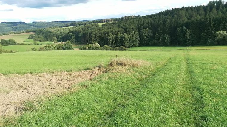 Even later gaat de route weer bijna recht bergafwaarts, langs sappige weiden en uitgestrekte maïs- en tarwevelden. Onderweg ben je voortdurend onder de indruk van de prachtige uitzichten tot je terugkeert naar een kronkelend bospad en ontspannen terugkeert naar het startpunt in Müsch.