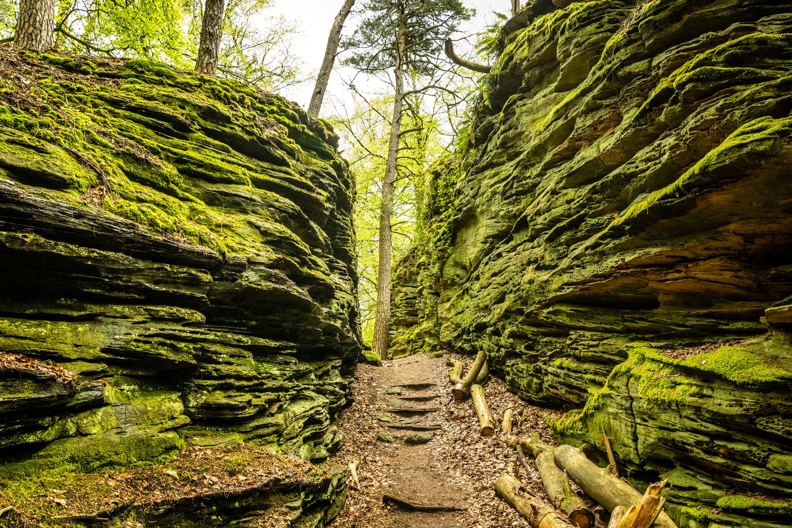 De tocht ontleent zijn naam aan de "Groene Hel", een van de indrukwekkende rotsformaties in de Zuid-Eifel. Aan het einde van de laatste ijstijd ontstonden hier vele grote en kleine spleten. Bijna geen zonnestraal verlicht de Groene Hel. Hij is zo groen omdat het zandsteen water absorbeert als een spons - ideale omstandigheden voor mos, algen en korstmossen.
