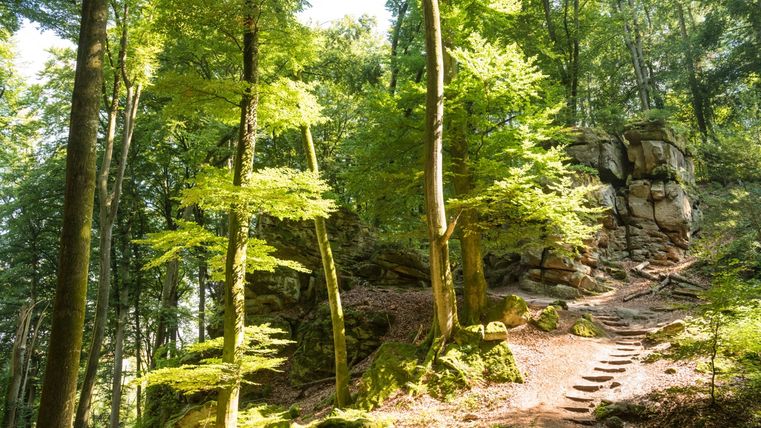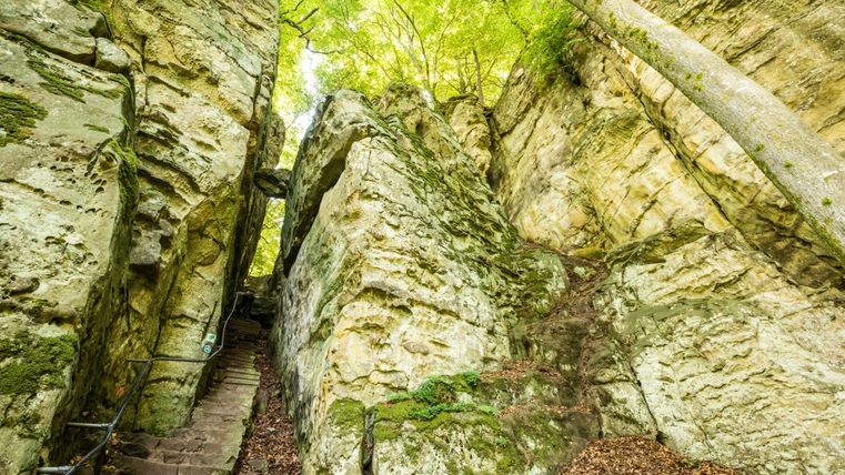 Ze staan majestueus alsof ze nooit anders hebben gedaan: de enorme rotsen van de Duivelskloof. Maar ze vertellen een dramatisch verhaal. Tegen het einde van de laatste ijstijd - zo'n 12.000 jaar geleden - leidden de afwisselende perioden van vorst en dooi tot enorme rotsvallen aan de rand van het Ferschweiler Plateau. Er moet toen een enorme klap zijn geweest toen een groot zandsteenblok uit de plateauwand kantelde en de diepe, smalle kloof opende waar we vandaag de dag doorheen kunnen lopen: De Duivelskloof.