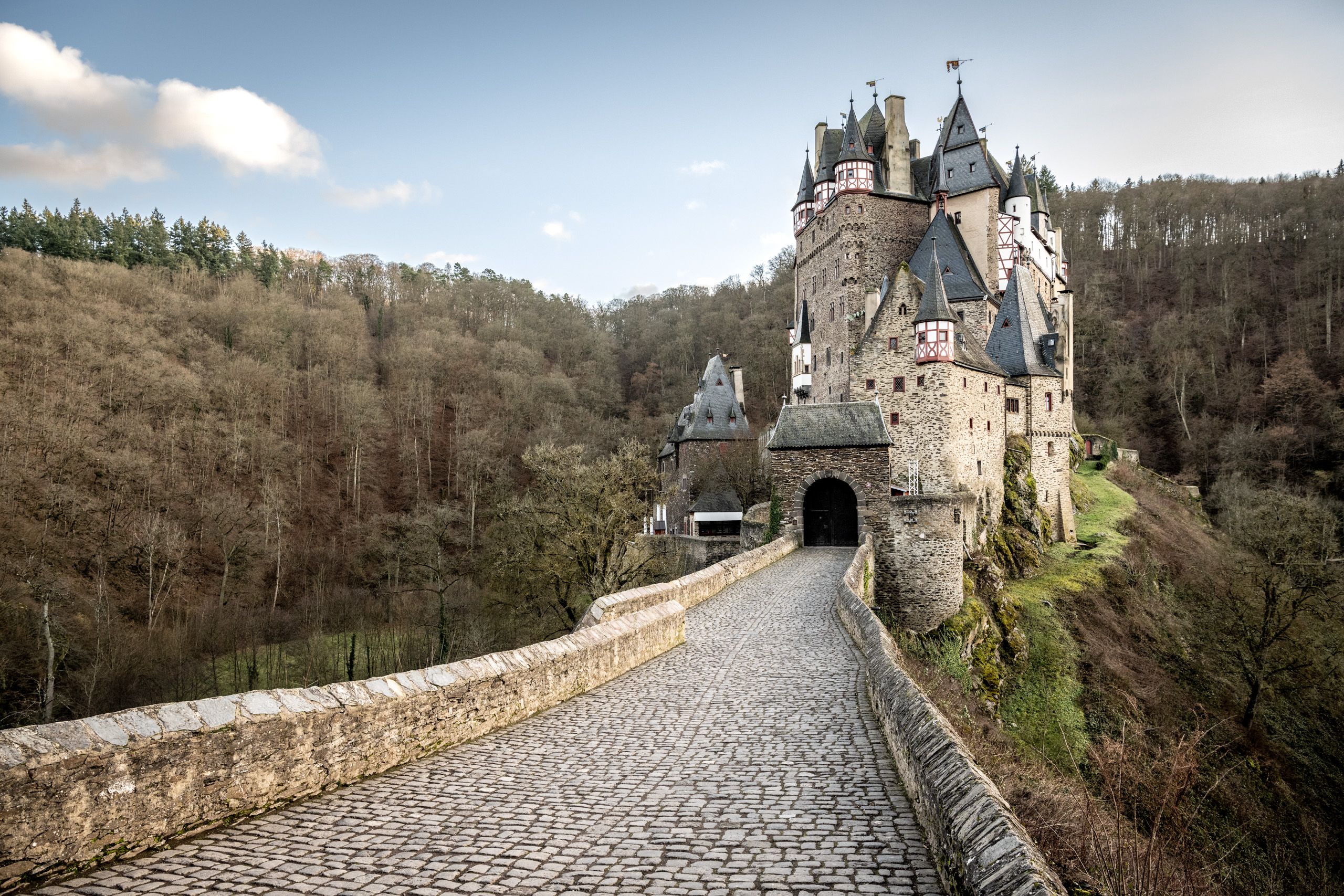 De wandeling naar kasteel Eltz wordt bepaald door heerlijke uitzichten over de weidse, vruchtbare heuvels van het Maifeld. Alras verandert het landschap. Je loopt omlaag, het wilde, bosrijke Elzdal in, door ooibossen, langs ruwe rotsen, waarachter plots kasteel Eltz
