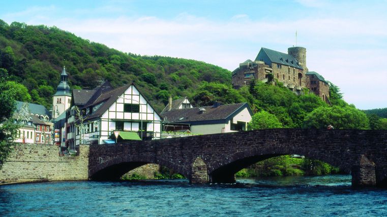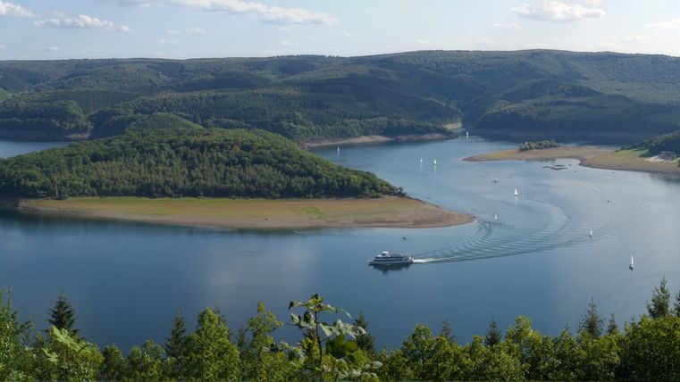Wie een sportieve uitdaging zoekt, is bij de 230 km lange Eifel-Hoogte-Route aan het juiste adres. Ze doet haar naam alle eer aan: het gaat omhoog – de grens van 600 hoogtemeters wordt regelmatig gepasseerd – en omlaag; soms buitengewoon snel! Daarbij heb je vanaf de toppen van de Eifel telkens weer nieuwe, prachtige vergezichten. Bij de noordelijke etappes fietst u door het Nationaalpark Eifel. Een groot gedeelte van de fietstocht loopt ook door het Natuurpark Noord-Eifel. Overigens, wie het hoogteprofiel te veel respect inboezemt, stapt gewoon over op een pedelec of e-bike en beklimt de heuvelruggen van het middelgebergte met een ‘duwtje in de rug’. Net zo afwisselend als het hoogteprofiel is de omgeving: nu eens open hoogland op de Dreiborner Hoogvlakte, dan weer dichte naaldbossen rond de Dahlemer Binz, of nauwe kloven zoals in het Lampertsdal met zijn jeneverstruiken, of weide panorama’s tot aan de Hoge Venen. Of het nu een wei vol wilde narcissen in Hollerath is, of het stuwmerenlandschap van Rursee, Urftsee en Obersee – het uitzicht verrast na elke bocht opnieuw. Af en toe afstappen is de moeite waard, want langs de Eifel-Hoogte-Route heb je talloze eetgelegenheden waar regionale specialiteiten worden opgediend. Bij het ‘Eifel-menu’ in Monschau mag de Monschauer mosterd natuurlijk niet ontbreken en als toetje moet men echt eens een ‘Monschauer Dütchen’ proberen, een van biscuitdeeg gebakken hoorntje, dat gevuld wordt met slagroom of ijs. Maar ook vele bezienswaardigheden en informatiecentra liggen er uitnodigend bij, bijvoorbeeld de thematische exposities in de vijf officiële toegangspoorten tot het nationaalpark, de voormalige nationaal-socialistische ‘Ordensburg’ Vogelsang, het natuurcentrum Eifel in Nettersheim of het LVR-openluchtmuseum in Mechernich-Kommern. Deze laten op aanschouwelijke wijze de bijzonderheden van de streek zien en bieden informatie over flora, fauna, geologie of regionale geschiedenis.