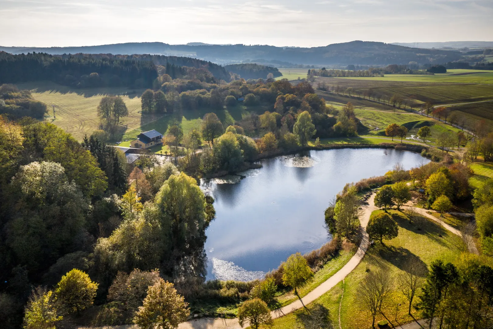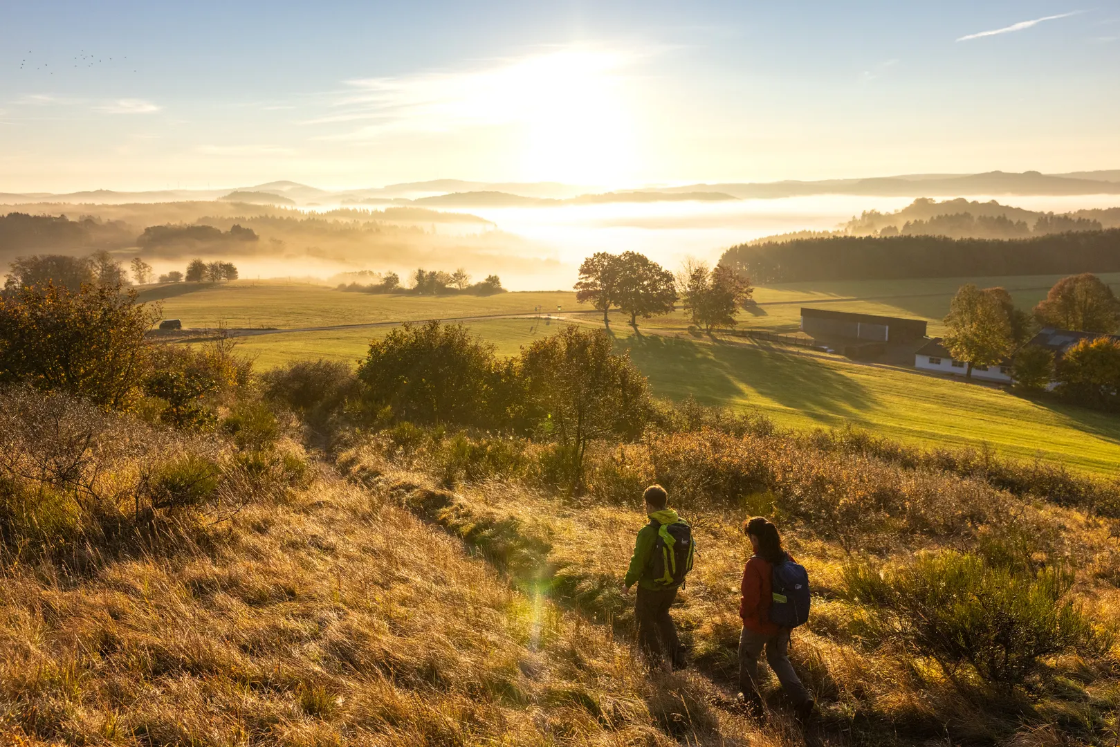 Bij de start van je wandeling in de misdaadstad Hillesheim voel je je meteen een beetje verheven, want je staat op de historische stadsmuur van Hillesheim. Hiervandaan heb je een prachtig uitzicht over de stad en het Eifel-landschap. Even later word je begroet door het idyllische Bolsdorfer Tälchen met zijn meertje, kalksteenrotsen en de Hillesheimer Bach die zich door de weiden kronkelt. Door het open landschap wandel je nu verder totdat je de rivier de Kyll oversteekt en vervolgens stap voor stap omhooggaat. Bij een trapleuning in het open bos blijft je blik hangen - waar leidt deze trap naartoe? Je bent nieuwsgierig en klimt de trap af. Een koude luchtstroom stroomt je tegemoet en om je heen wordt het donkerder. Je bevindt je in een van de molensteengrotten bij Roth. Ze ontstonden door de winning van molenstenen midden in de vulkaan Rother Kopf. In het bos buiten de grot kun je zelfs nog een molensteen die niet af is ontdekken. Op de top aangekomen strekt zich onder je een uitzicht uit over de binnenkant van de vulkaan: je kijkt in een lavasteengroeve. Vanaf de Rother Kopf heb je ook een ver uitzicht over de heuvelachtige Eifel, perfect voor een pauze voordat je licht bergafwaarts verder gaat naar het stuwmeer Gerolstein. Je weerstaat de verleiding om hier al af te slaan naar Gerolstein, het doel van de etappe. Nu wordt het echt spannend: na het vulkanische landschap liggen nu de indrukwekkende rotsen van de Gerolsteiner Dolomieten voor je. Ooit (ca. 390 miljoen jaar geleden in het Onder-Devoon) was hier een warme zee! Had je dat gedacht? De Dolomieten zijn een voormalig koraalrif. Laat je fantasie de vrije loop en je zult het zien.