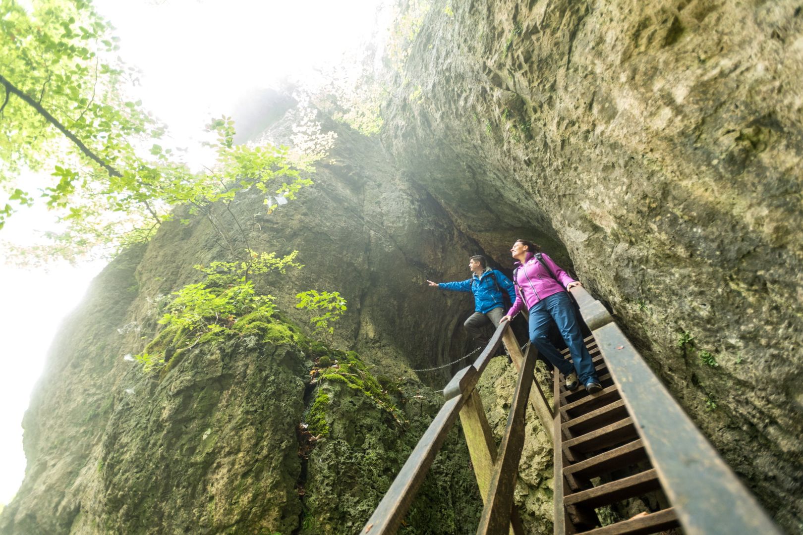 Na de steile rotsformaties kun je nog een kijkje nemen in de indrukwekkende Buchenlochgrot. Even later komt er weer vulkanisme in het spel. De merkwaardige krater 'Papenkaule' had een vulkaankegel moeten worden, maar de lavastroom liet zich afleiden door holle ruimtes en stroomde liever bergafwaarts naar het dal van de Kyll. Ook jij begeeft je nu eindelijk op een steil pad naar het dal en met een voldaan gevoel heb je het doel Gerolstein bereikt.