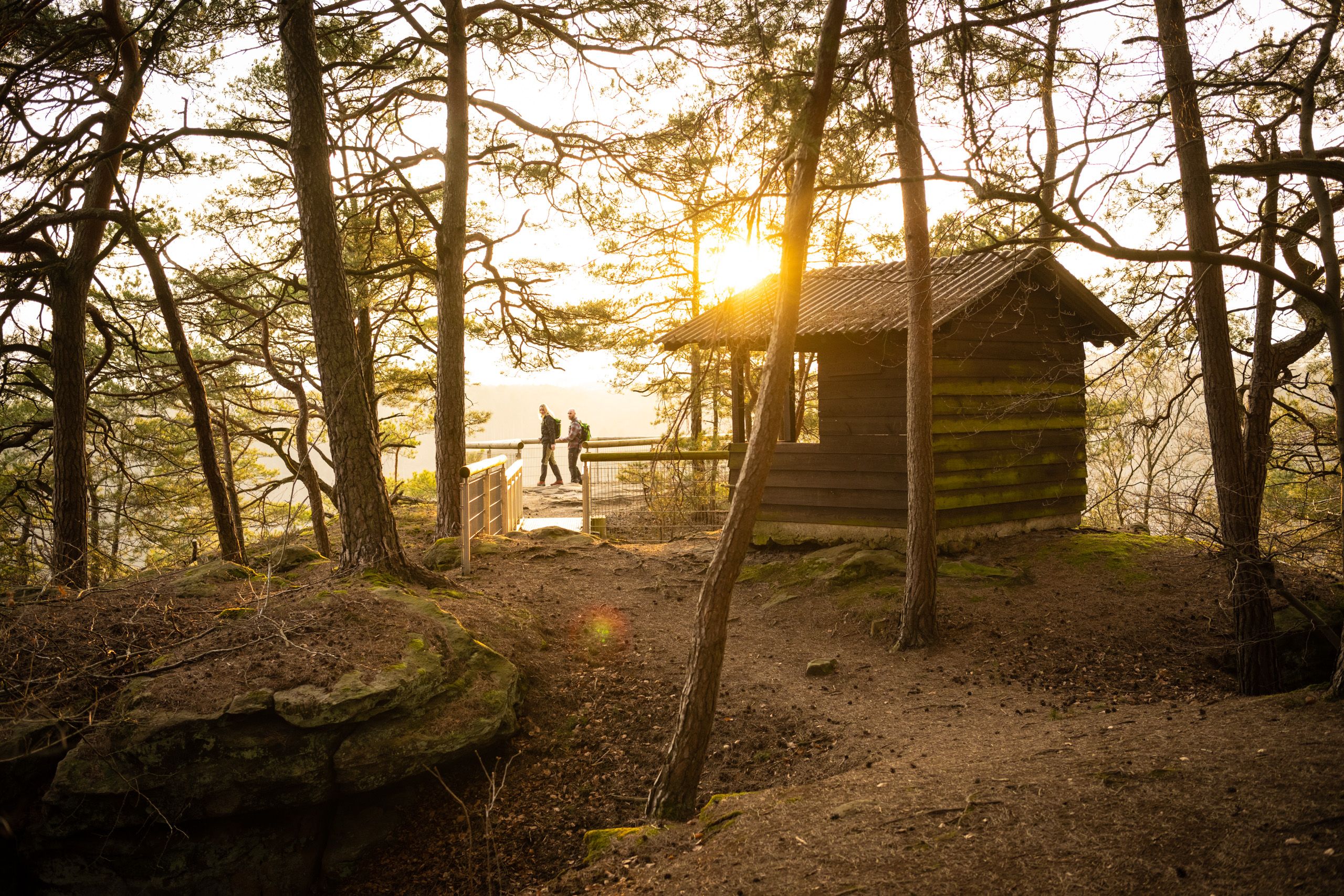 Op de Felsenweg 5 wandel je over de oostelijke flank van de Prüm vallei tussen Irrel en Holsthum. De route voert je eerst zuidwaarts naar de Katzenkopf met zijn Westwall Museum, een van de weinige tankfabrieken uit de Tweede Wereldoorlog die je kunt bezoeken. Schud de donkere gedachten van je af, adem de frisse boslucht diep in en volg de beboste heuvelrug tussen Prüm en Nims in noordelijke richting. Geflankeerd door bizarre rotstorens wandel je langs een klifrand met een adembenemend uitzicht in de Prüm vallei, passeer je de nederzetting Prümer Burg, raak je de Rochuskapel aan en bereik je de hoogten van de Holsthumerberg, waar de route nu weer de vallei in draait.