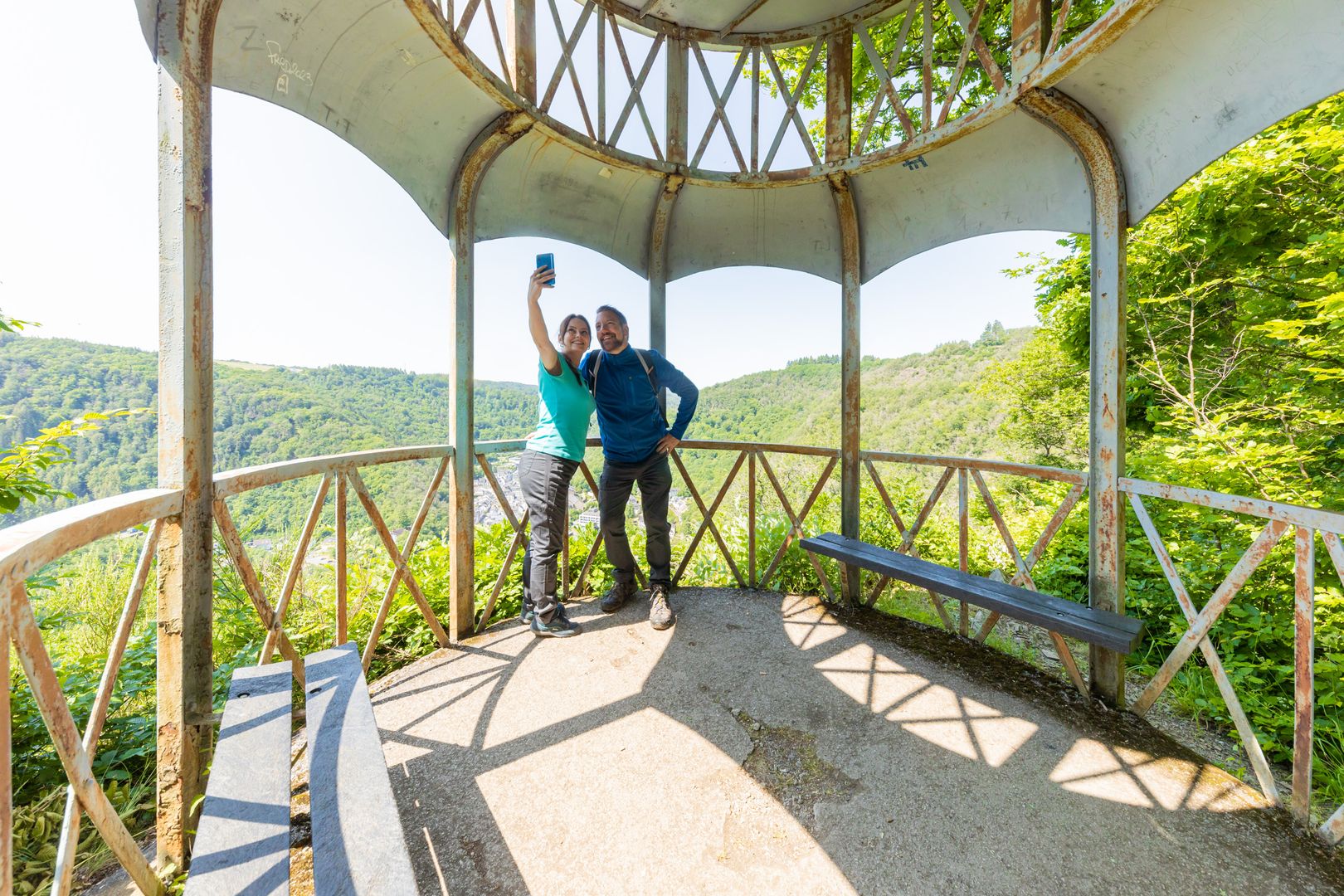 De Eifel is rijk aan uitzichten, dus de beklimmingen van de wandelpaden eindigen altijd met een beloning. Uitzicht over de valleien en tot aan de horizon - elk seizoen laat zich van zijn eigen charmante kant zien. De Kurschattensteig in Bad Bertrich is een van deze wandelroutes. De zeven kilometer lange route loopt rond het kuuroord met uitzichten over de stad en tot ver in de Vulkaaneifel. De tocht wordt gekenmerkt door gladde wandelpaden, smalle paden die soms een bijna alpien karakter hebben en prachtige vergezichten. Bad Bertrich ligt letterlijk aan de voeten van de wandelaars op de tocht.Vanaf de Mooshütte of de Hohenzollernturm opent zich het panorama van de Vulkaaneifel. In het bos dekt het groene bladerdak de wandelaars beschermend af. De heldere lucht van de Eifel is rustgevend en een verwenprogramma voor de longen.