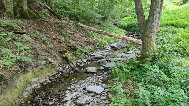 Landelijke indrukken, rustige bospaden, het levendige ruisen van de Richelsbach en weidse uitzichten over velden en weiden. Er valt veel te zien en te genieten op deze korte, gezinsvriendelijke rondwandeling. Je start en eindigt op de parkeerplaats voor wandelaars bij de kerk van Vossenack en volgt de hele route het routebord [06]. Als je niet wilt stoppen bij een van de gezellige restaurantjes in Vossenack, is er onderweg een rustieke barbecuehut. Ideaal voor een picknick midden in de natuur.