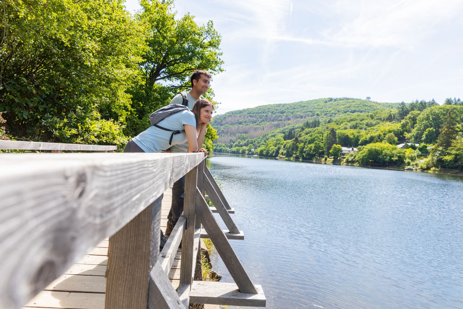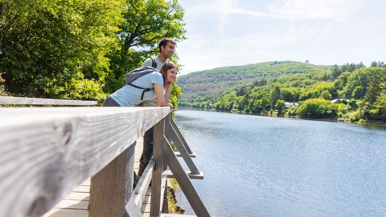 Langs het oorlogskerkhof van Mariawald loopt de route vervolgens door het prachtige Herbstbachdal omlaag naar het stuwmeer van Heimbach. Als je hier even wilt pauzeren en wat wilt drinken, is het "terras aan het meer" met uitzicht op het stuwmeer en het Nationaal Park Eifel de perfecte plek. De route gaat verder langs de indrukwekkende Jugendstil-centrale langs het stuwmeer. Het pad langs het water - door de plaatselijke bevolking ook wel het "junglepad" genoemd - maakt indruk met romantische loopbruggen, prachtige uitzichten over het meer en is gemakkelijk begaanbaar. Terug in Heimbach wacht hongerige wandelaars een welverdiende maaltijd.