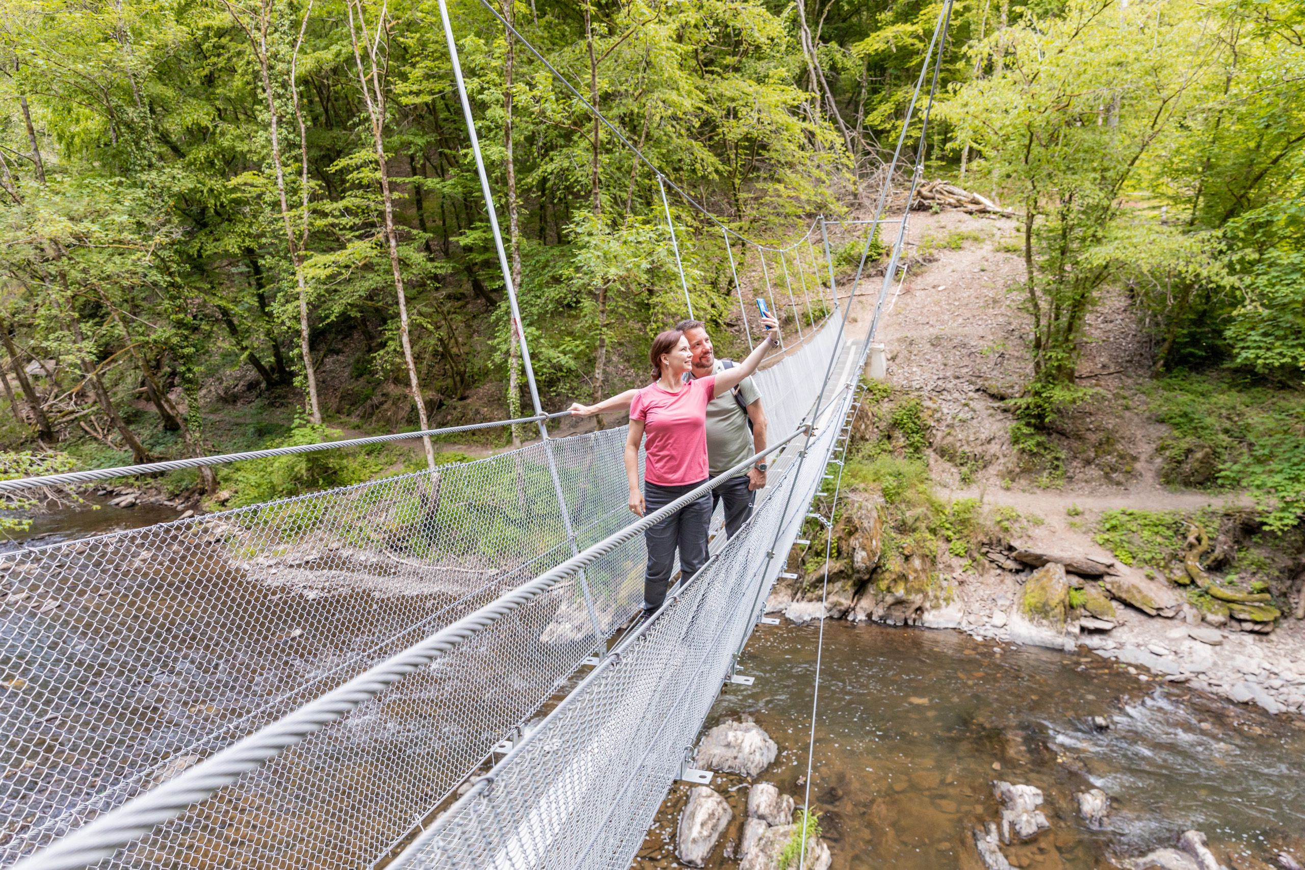 Eenmaal boven wacht je de beloning voor je inspanningen: spectaculaire uitzichten over de valleien, de kasteelvijver en de boomtoppen. Het gevoel op de rand van een klif te staan in de Robertskanzel-hut, de natuurbelevingshut Burberg biedt uitzicht op de bossen. En steeds weer dat gevoel: ik heb het gedaan, ik heb de uitdaging overwonnen. De meegebrachte versnaperingen tijdens de pauzes in de berghutten smaken nog beter. De beklimmingen worden gevolgd door afdalingen in het dal, terug naar de Lieser, die de wandelaars vrolijk begroet en handen en voeten verfrist met zijn koele water.