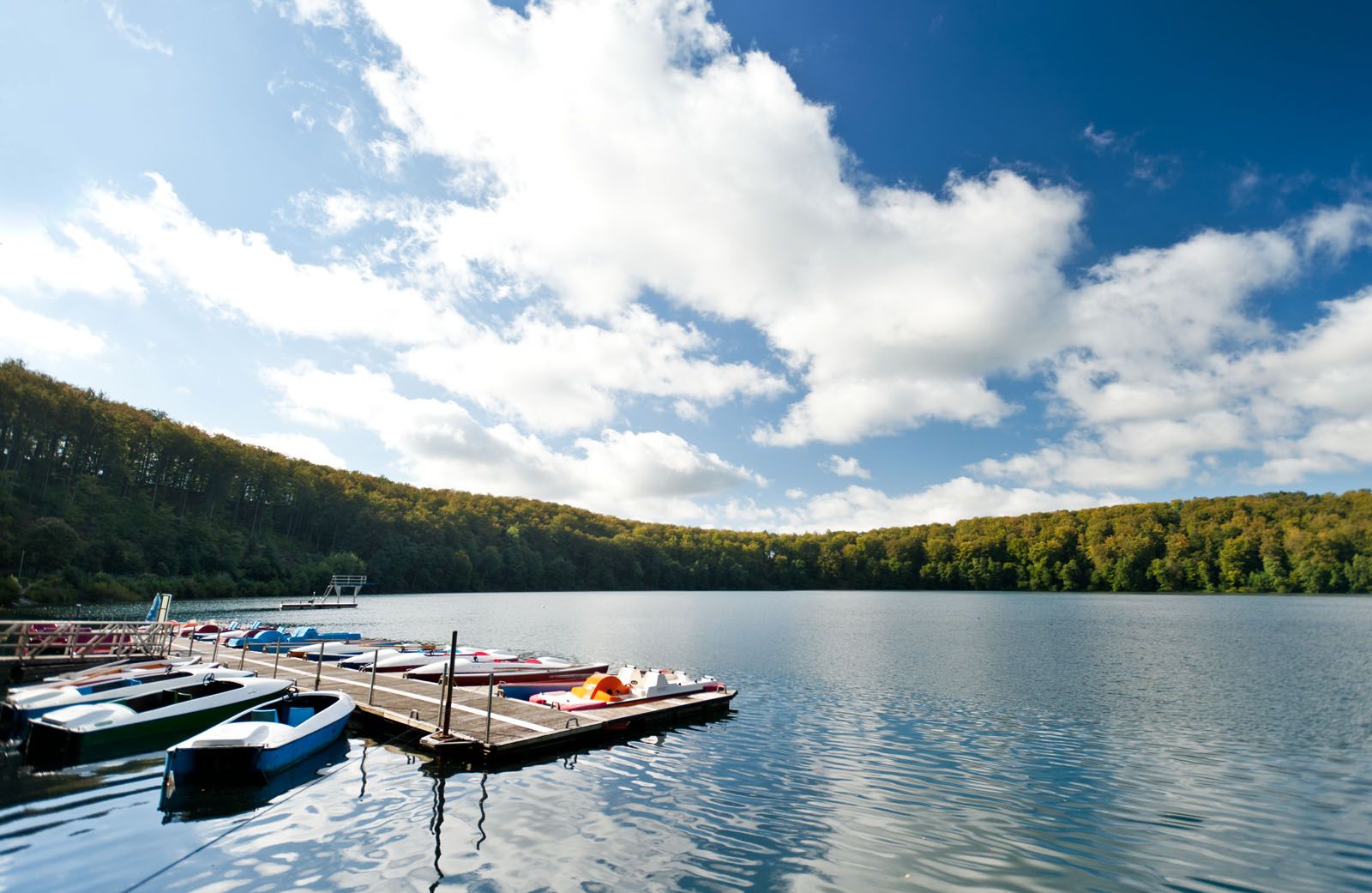 Zeven maren in één klap! Eén klap klopt niet helemaal, je hebt twee dagen nodig. Maar die mogen er dan ook zijn! Een start van wereldformaat bij de Schalkenmehrener Maar. Naar de klokkengieter in Brockscheid, de Hitsche Maar, een mysterieus opgedroogde maar, de Dürre Maar en de Holzmaar – een eerste wandeldag met louter highlights. En het pad gaat verder naar de bijna cirkelvormige Pulvermaar, het Strohner Maartje en de verborgen liggende Immerather Maar. En we gaan door met hoogtepunten: na de maren volgen de molens in het Ueßbachdal. Wat een schat aan belevenissen!
