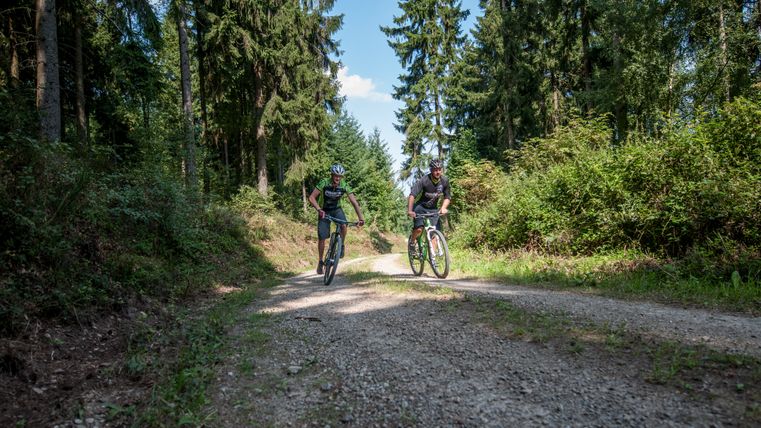 Mountainbiketocht rond Nideggen: Afgezien van een steile klim uit het Rurdal, langs het natuurreservaat Buntsandsteinfelsen, is deze MTB-route over het algemeen goed te doen. De route loopt grotendeels parallel aan de oevers van de Rur. Er is parkeergelegenheid bij de treinstations in Nideggen-Brück en Abenden en op de parkeerplaats in het centrum van Nideggen.