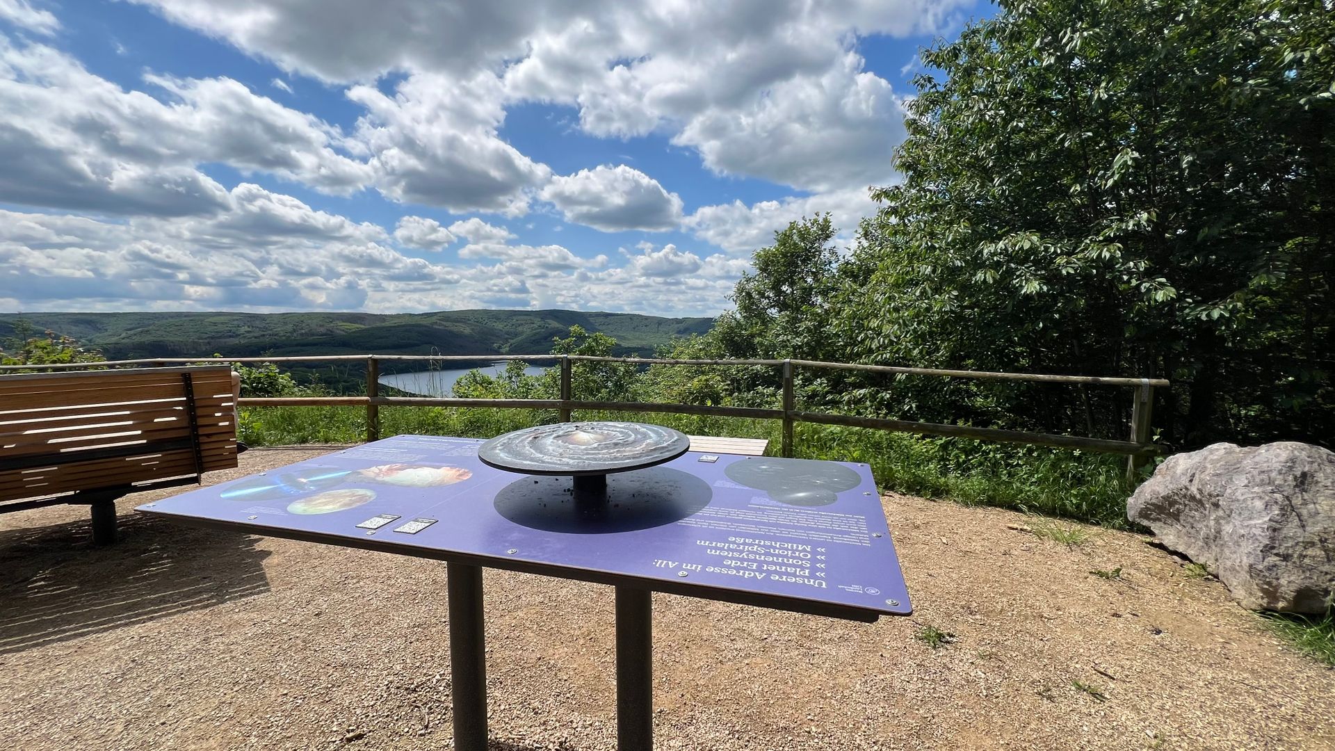 De wandeling begint bij de kerk. We volgen alleen de borden nr. 20 bergafwaarts richting de Rursee, via Scheidtbaum naar Harscheidt en dan licht bergopwaarts terug naar het startpunt. Onderweg heb je prachtige panoramische uitzichten over de Rursee en Nideggen, Brandenberg en Bergstein.