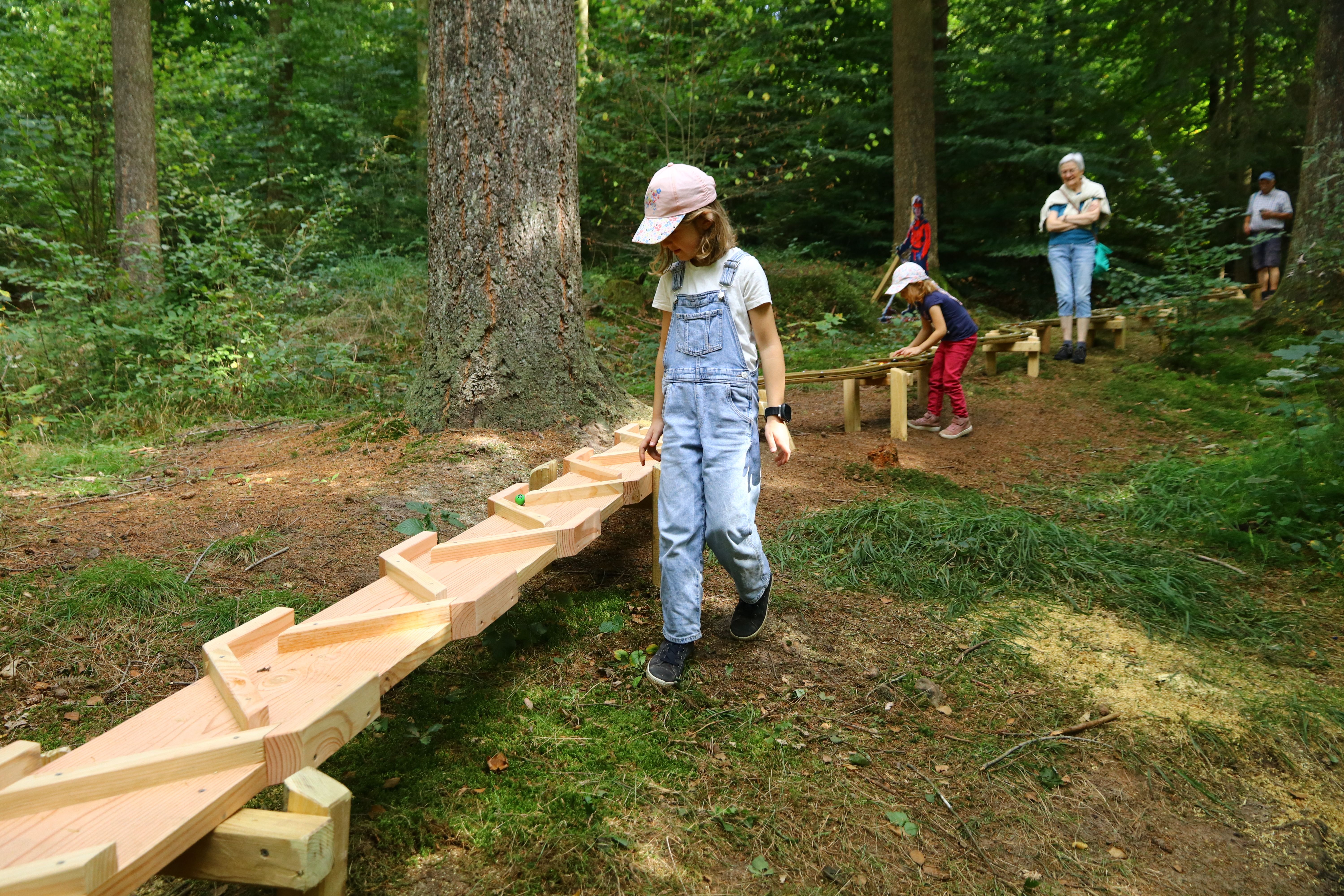 Het hoogtepunt is de 400 meter lange bosbalbaan aan het einde van het rondlopende pad. Geweldig leuk voor kinderen! Midden in het bos racet de bal bergafwaarts - soms rechtdoor, soms met bochten of door speciale elementen en kleine hindernissen. De ballen kunnen worden gekocht bij twee ballenautomaten.