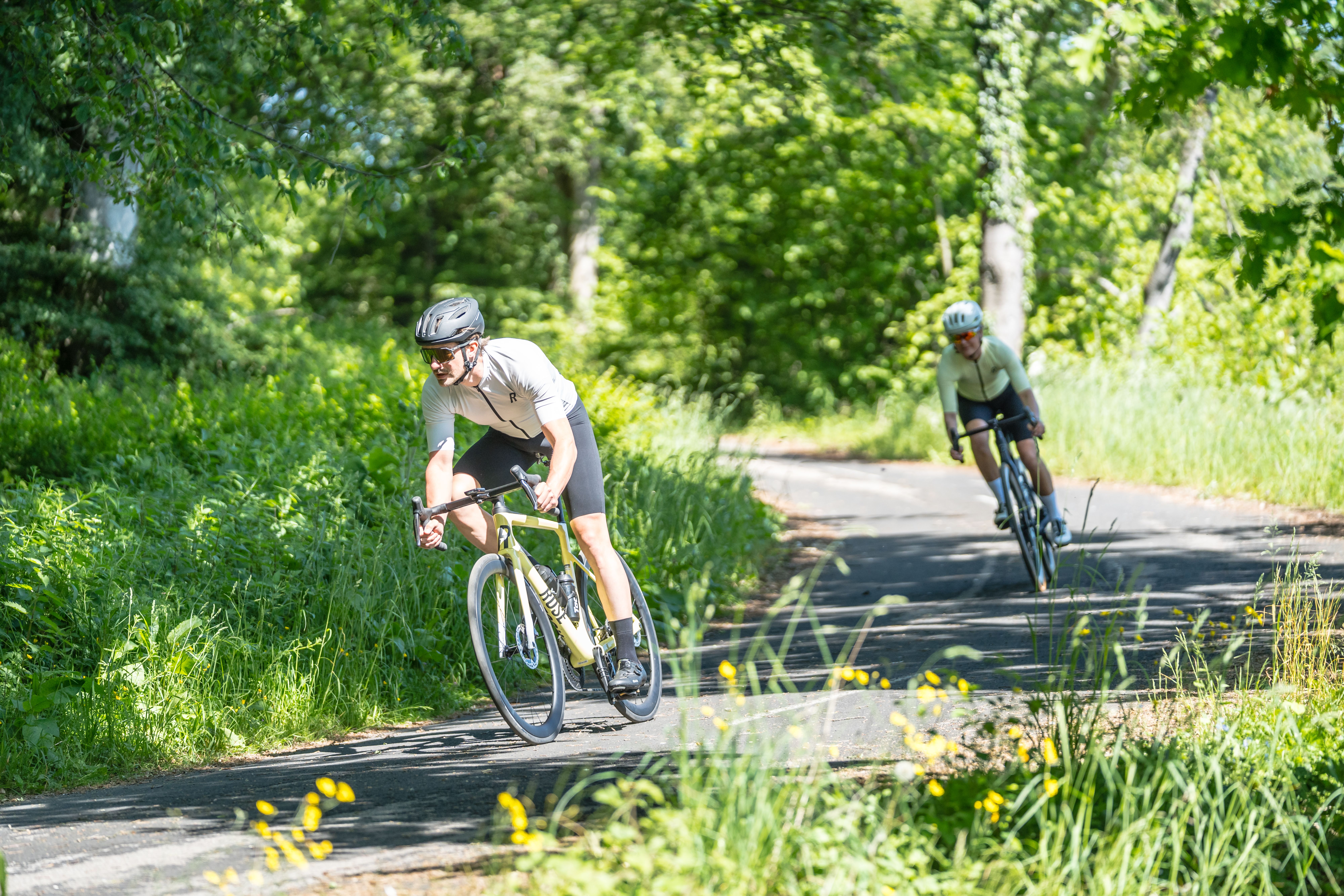 Kijk uit voor het verkeer! Deze tocht voert langs drukke landwegen.