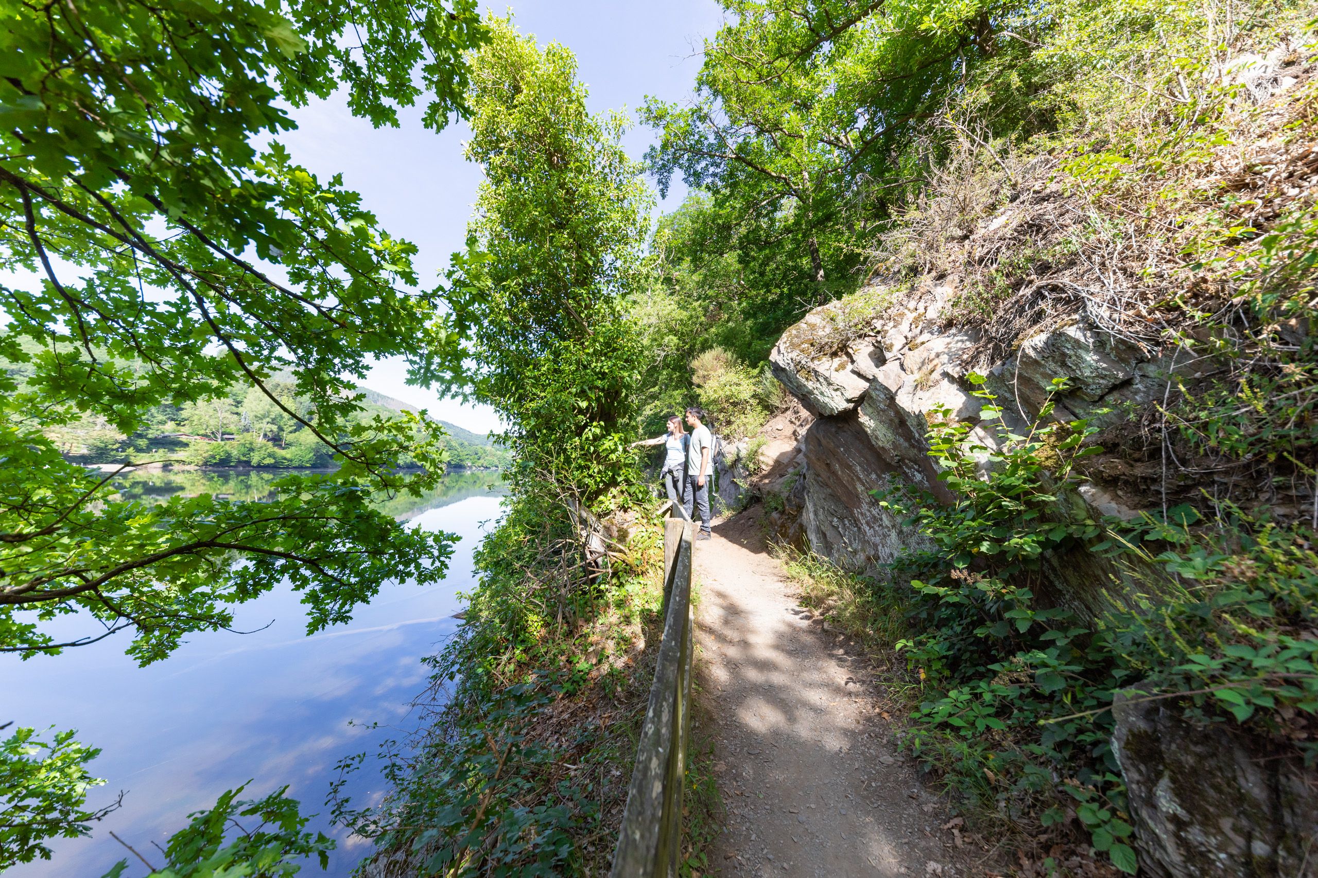 Je loopt altijd langs de rand van het water. Hier kun je je vergapen aan dichte loofbossen en heb je een prachtig uitzicht op de torenhoge Kermeter (een deel van de Rureifel op ruim 520 meter hoogte) en de Meuchelberg.