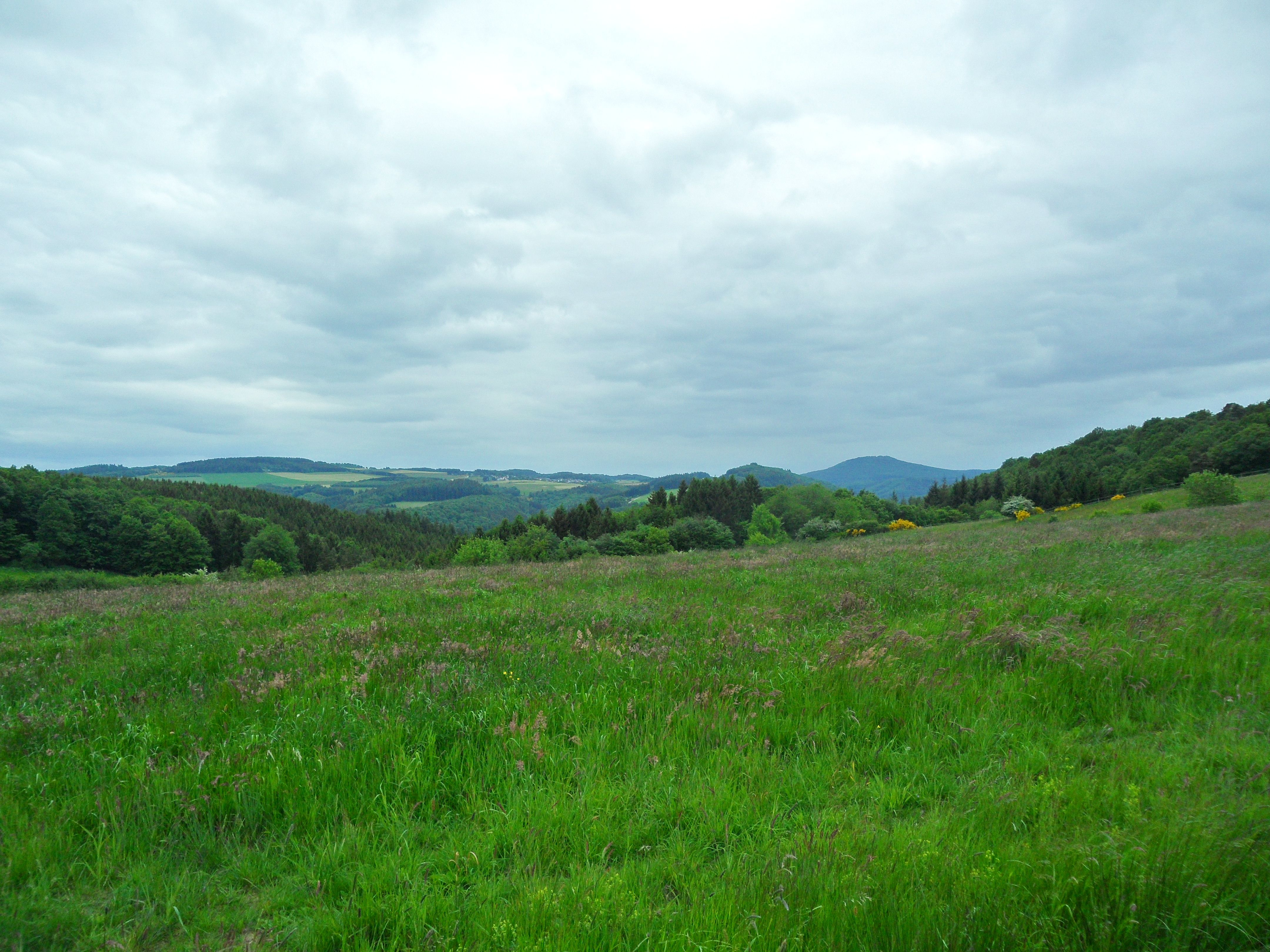 Rechts zie je de "Dümpelhard" met zijn twee zendmasten. Als we verder rijden in de richting van Sierscheid, kun je rechts in de verte ook kasteel Nürburg zien liggen.