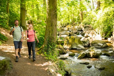 De wandeling eindigt met een fantastisch panoramisch uitzicht over Bollendorf en het Sauerdal vanaf de "Lingelslay". En omdat hij zo bijzonder is, hebben de inwoners van Bollendorf er hun eigen audiotour voor gemaakt - de "Groene hel luistertour"die je kunt downloaden op je smartphone. Hier kun je veel interessante en spannende dingen te weten komen - waaronder natuurlijk waarom de Groene Hel groen is!