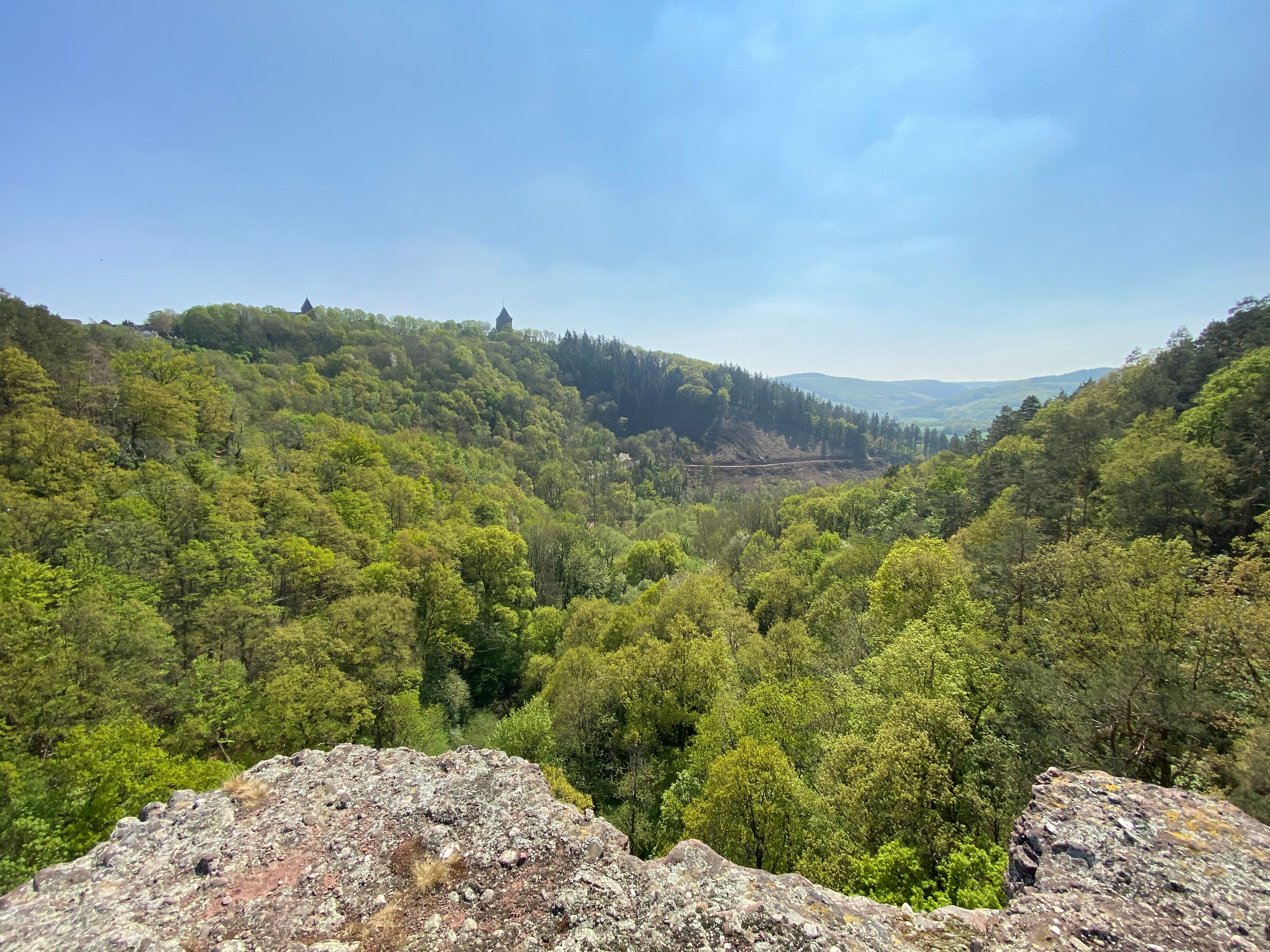 Stap 3 - Na de verfrissing steek je de Rur over en dan is het tijd om te klimmen! Maar de inspanning is de moeite waard. Spectaculaire rode zandstenen rotsformaties wachten op je. Je komt bij de Hindenburger Tor, die ongeveer 220 miljoen jaar geleden is gevormd uit puin en zand. Dan kom je bij het Christinenley rotsplateau. Vanaf hier heb je het beste uitzicht op de gevarieerde natuur. Nog een groepsfoto is een must.