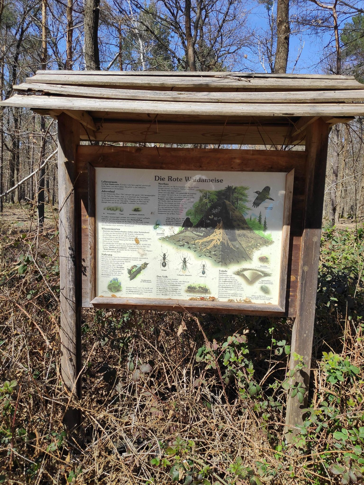 Bij het informatiebord over de rode bosmier scheidt de grote heideweg (donkerblauwe markering) zich van de rondwandeling nr. 52. Vanaf dit punt volgen we de Eifelverein-markering nr. 52 rechtdoor. Aan het einde van het pad gaan we bij de T-splitsing met een bankje rechtsaf en komen we de donkerblauwe markering van de grote heideweg weer tegen. Deze begeleidt ons en wandelpad nr. 52 tot het einde van de tocht. Onderweg nodigt een zogenaamde "open bospaddenstoel" uit om uit te rusten en te ontspannen.