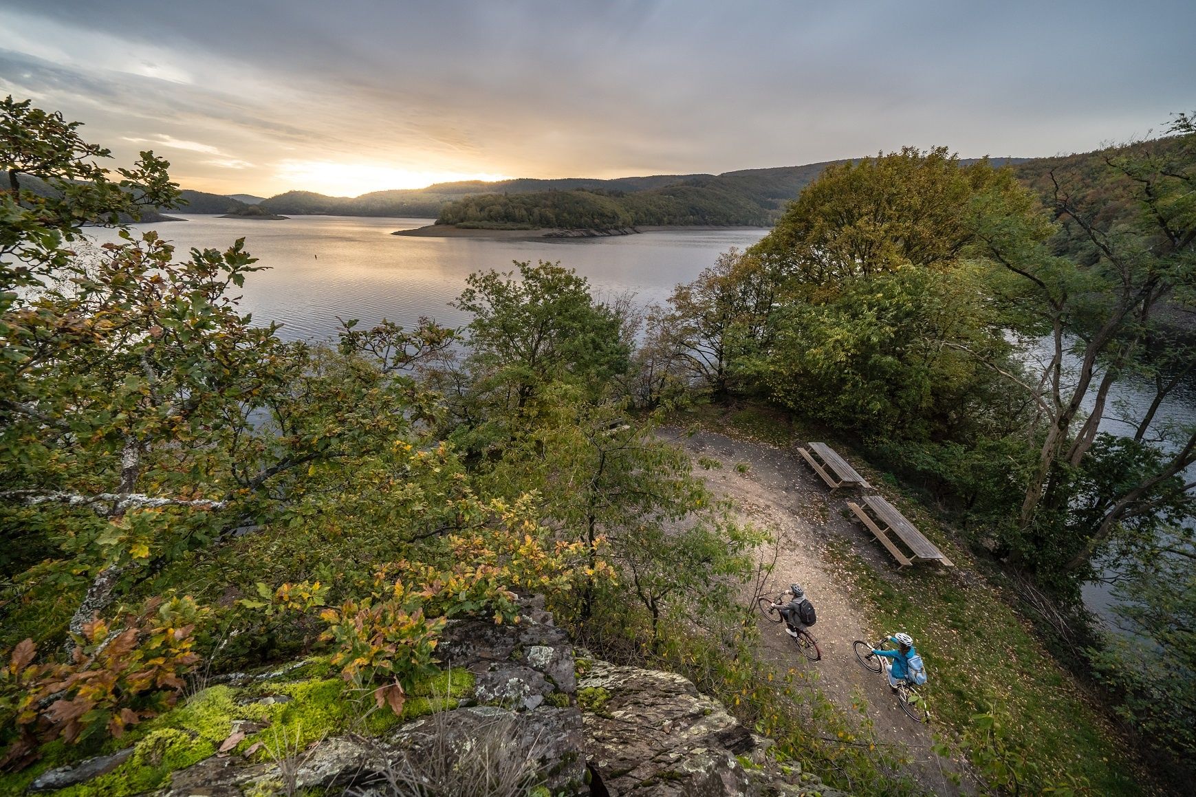 Een goede conditie is absoluut noodzakelijk voor deze gravel-fietsroute. Maar we worden er echt voor beloond, want veel hoogtepunten van de Eifel liggen op onze route: de Rursee, waar we bijna helemaal omheen fietsen; Monschau, de parel van de Eifel; de Rur en het idyllische Kalltal, het vakwerkdorp Abenden; het pittoreske Simonskall; Heimbach met slot Hengebach; de rode zandsteenrotsen; het Schmidt Wildlife Park (via een korte omweg) en nog veel meer. Onderweg zijn er talloze plaatsen waar je kunt stoppen voor een verfrissing, bankjes en mooie uitzichtpunten.