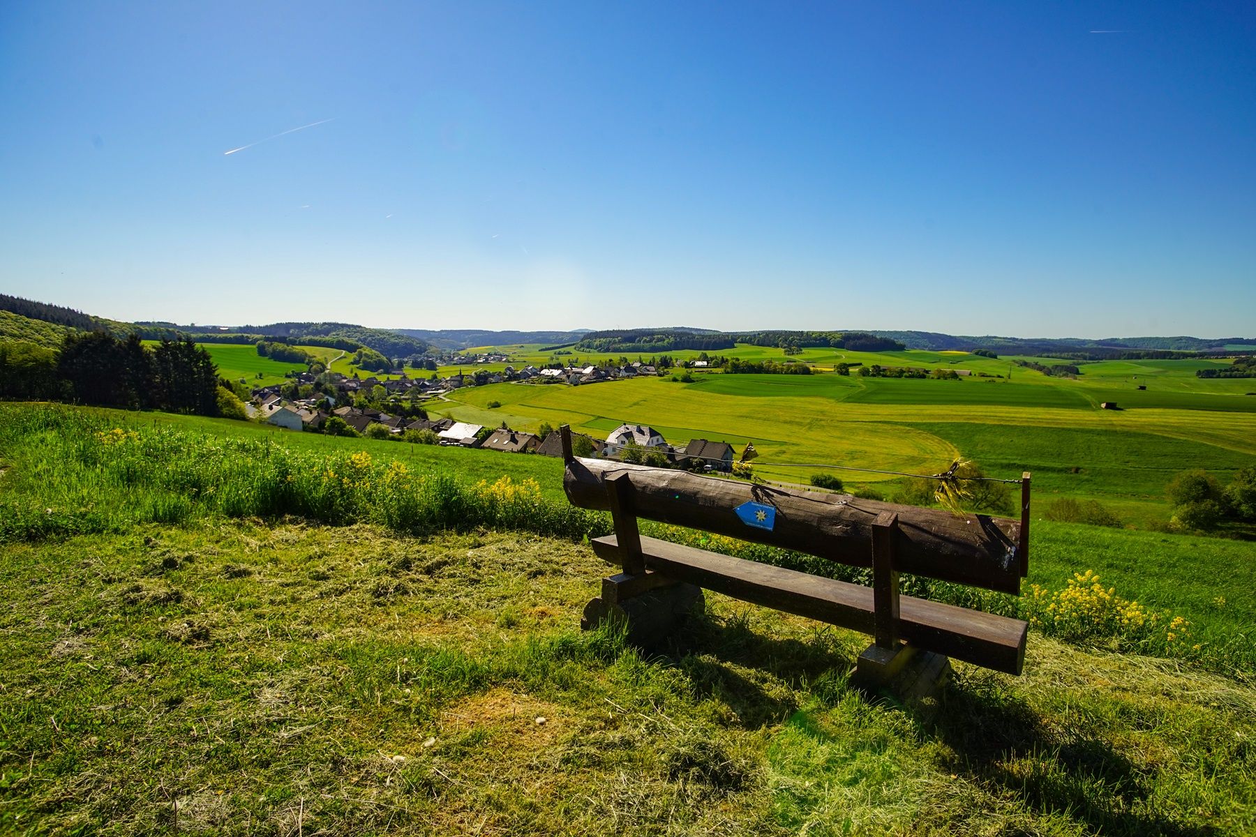 De 6,1 km lange "Sonnen-Rundweg" in Herresbach is een prachtige rondwandeling die in ongeveer 1,5 uur kan worden voltooid en fantastische uitzichten biedt op het landschap van de Vordereifel.