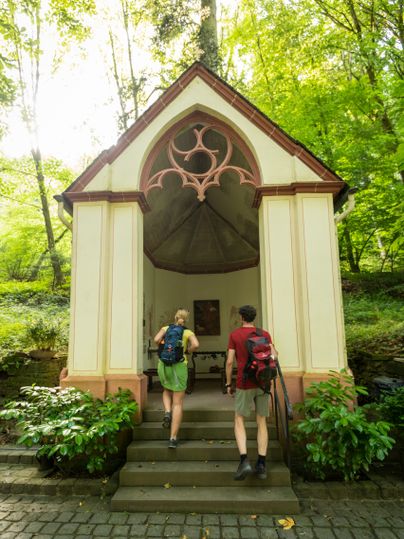 Parkeer je auto in Irrel en neem de Enztal-fietsbus (lijn 423) naar Neuerburg. Daar kun je stoppen voor een verfrissing in het restaurant "Bei Johann" voordat je een korte wandeling maakt langs de "Neuer-Burg-Weg" naar het bedevaartsoord Schwarzbildchen en vervolgens de tocht begint op het Enz-fietspad.