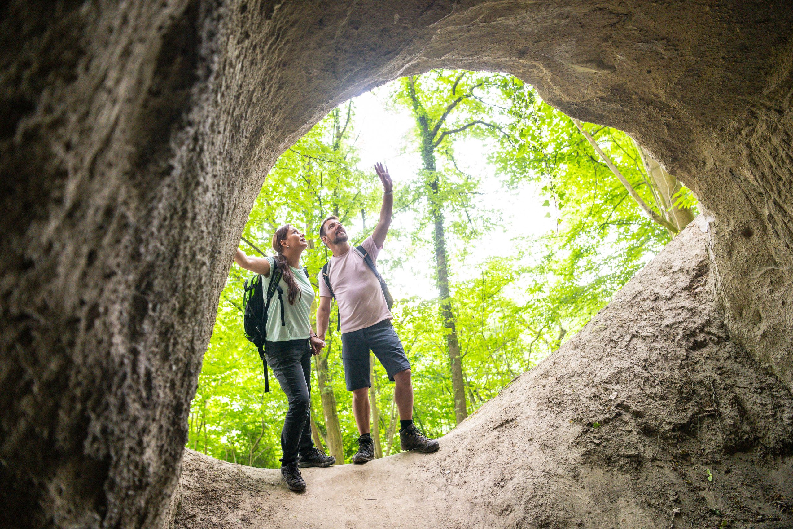 Een gedetailleerde beschrijving met achtergrondinformatie is ook te vinden op de website van onze vulkaanparkgids Konrad Friedgen: https://profirouten.de/eifel/geopfad-route-u-trasshoehlenweg