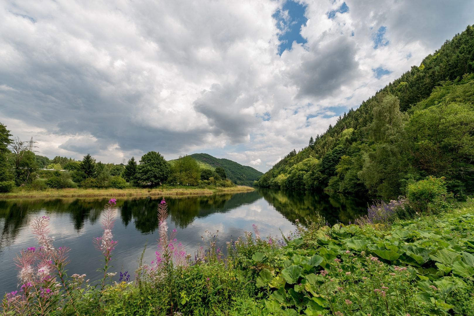 De eerste 10 kilometer fiets je over het RurUfer fietspad (RUR). Bij de rotonde ga je de stad in tot aan de stenen brug. Hier volg je de loop van de rivier over het meerpad langs ons eerste meer naar de bekende Jugendstil-centrale. Stroom is een goed sleutelwoord. Even later heb je die nodig voor de eerste beklimming, die je naar de hoogte van de stuwdam voor ons tweede meer brengt, de Schwammenaueler Stausee, ook bekend als de Rursee.
