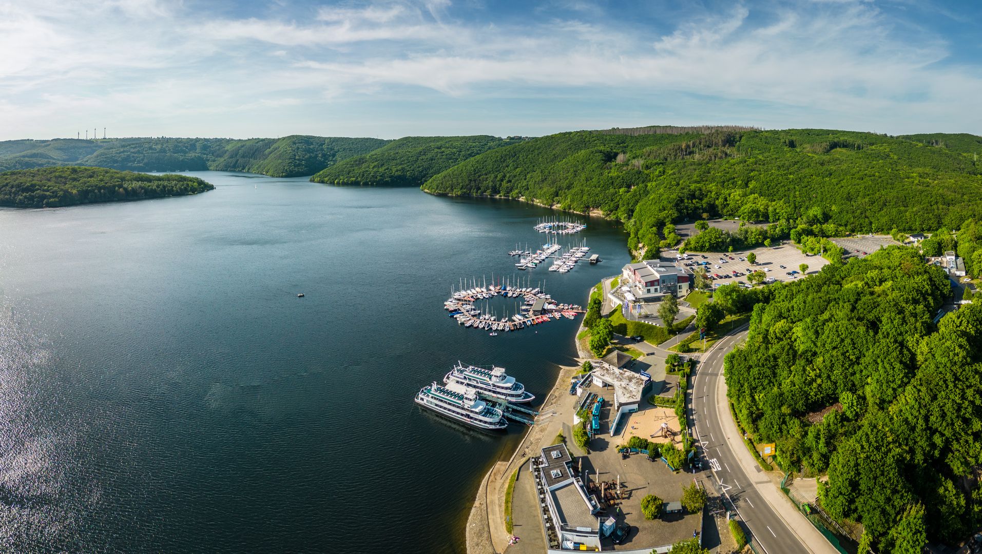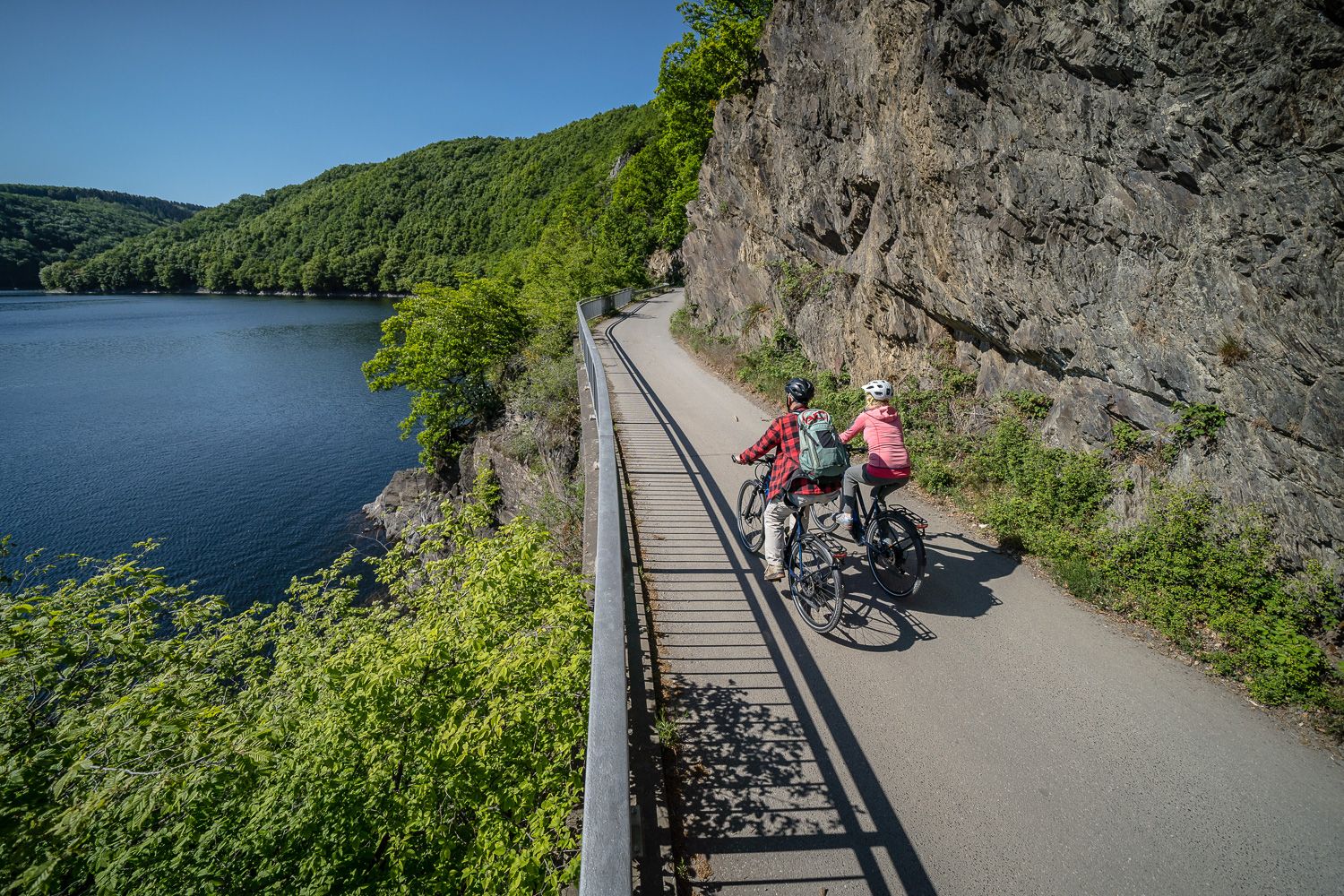 Je fietst nu al langs het derde meer, de zogenaamde Obersee. De oude K 7 is decennialang de verbinding geweest tussen Rurberg en Gemünd. Het vlakke deel van de route eindigt als je omhoog fietst naar de Urftseemauer. Er zijn plaatsen om uit te rusten en te ontspannen op de structuur.