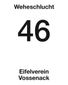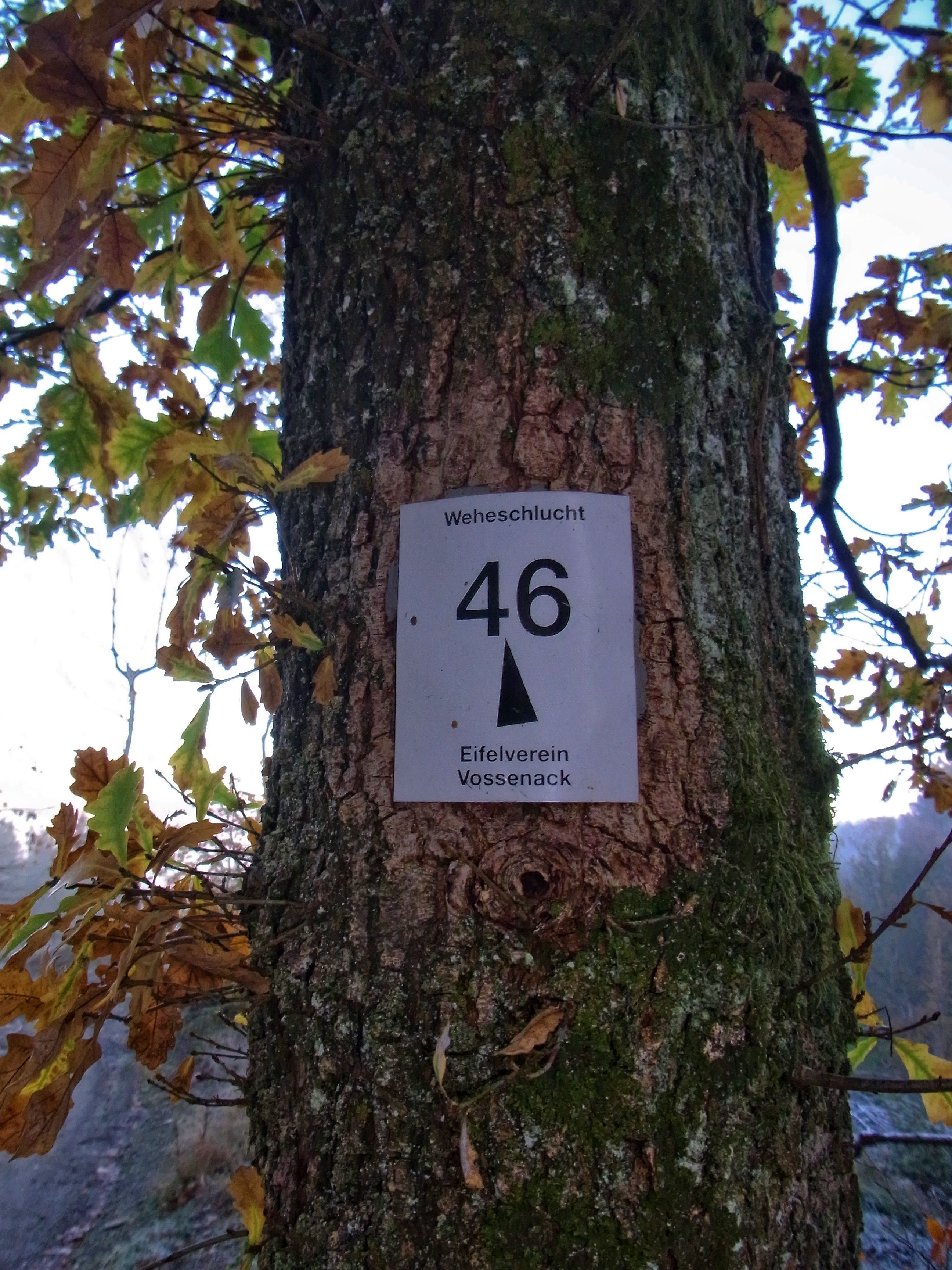 Het diep ingesneden dal van de Weiße Wehe geeft deze wandelroute zijn naam. Het startpunt is het hotel "Zum Alten Forsthaus" in Vossenack. De Wehebach ontstaat uit de samenvloeiing van de Roter Wehe en de Weißer Wehe. In 1981 vestigden zich zes Poolse bevers in het dal van de Weiße Wehe. Tot de 19e eeuw werden de knaagdieren bejaagd voor hun vacht, door de paus tot vis verklaard, gegeten tijdens de vastentijd en gebruikt als afrodisiacum. Het gevolg was dat ze bijna volledig uitstierven. Tegenwoordig wordt de populatie in de Eifel weer geschat op 200 tot 250 dieren. Begeleide wandelingen volgen de sporen van de bever. We volgen wandelroute nr. 46 .