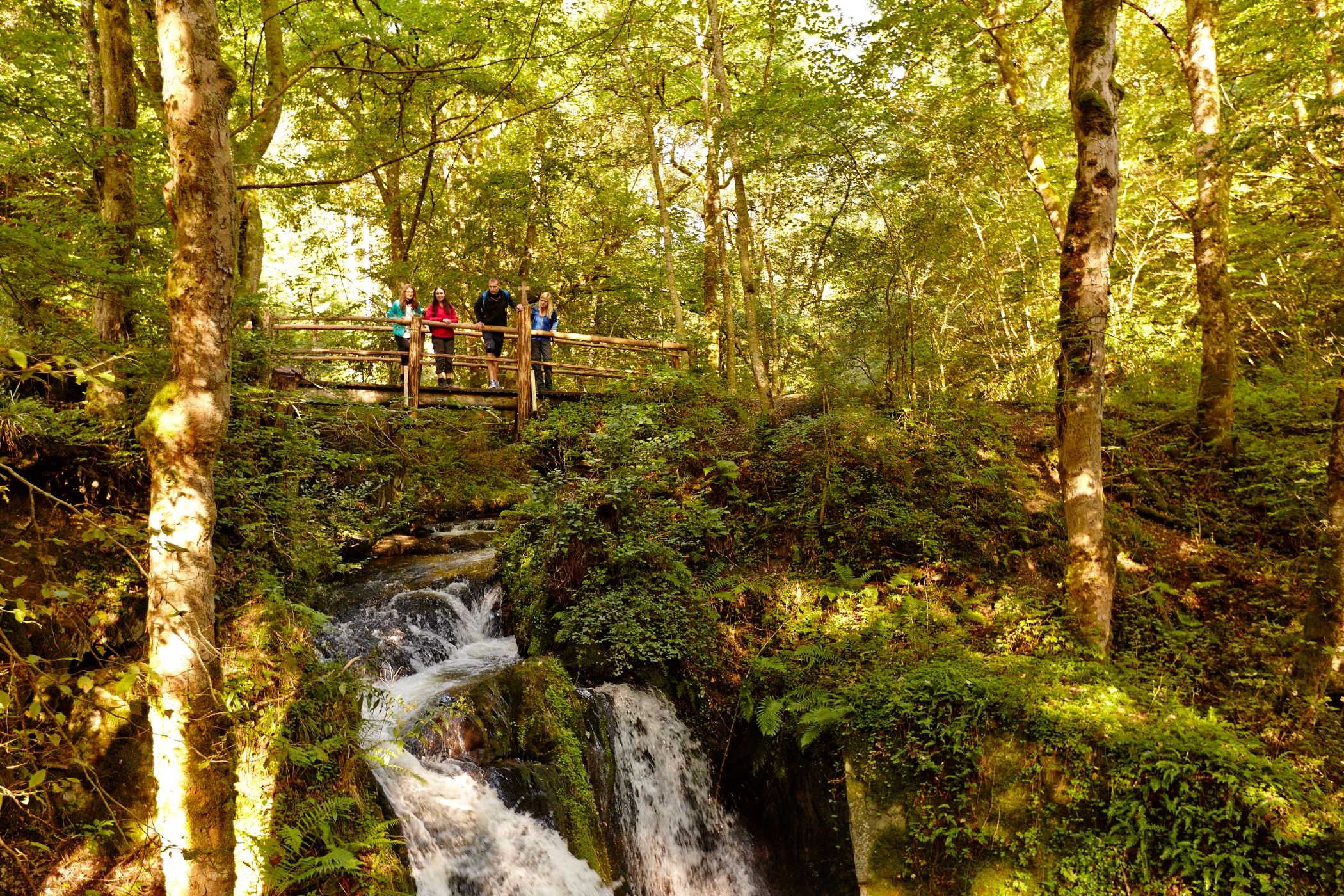 De route gaat verder langs een deel van de "Karolingische Weg" door het bos. Een absoluut hoogtepunt van de route is de waterval, de Rausch. Je hoeft alleen maar de bordjes te volgen en je staat aan de voet van de Rausch. De donderende waterval stort zich 7 meter in het dal, dit natuurspektakel is indrukwekkend!