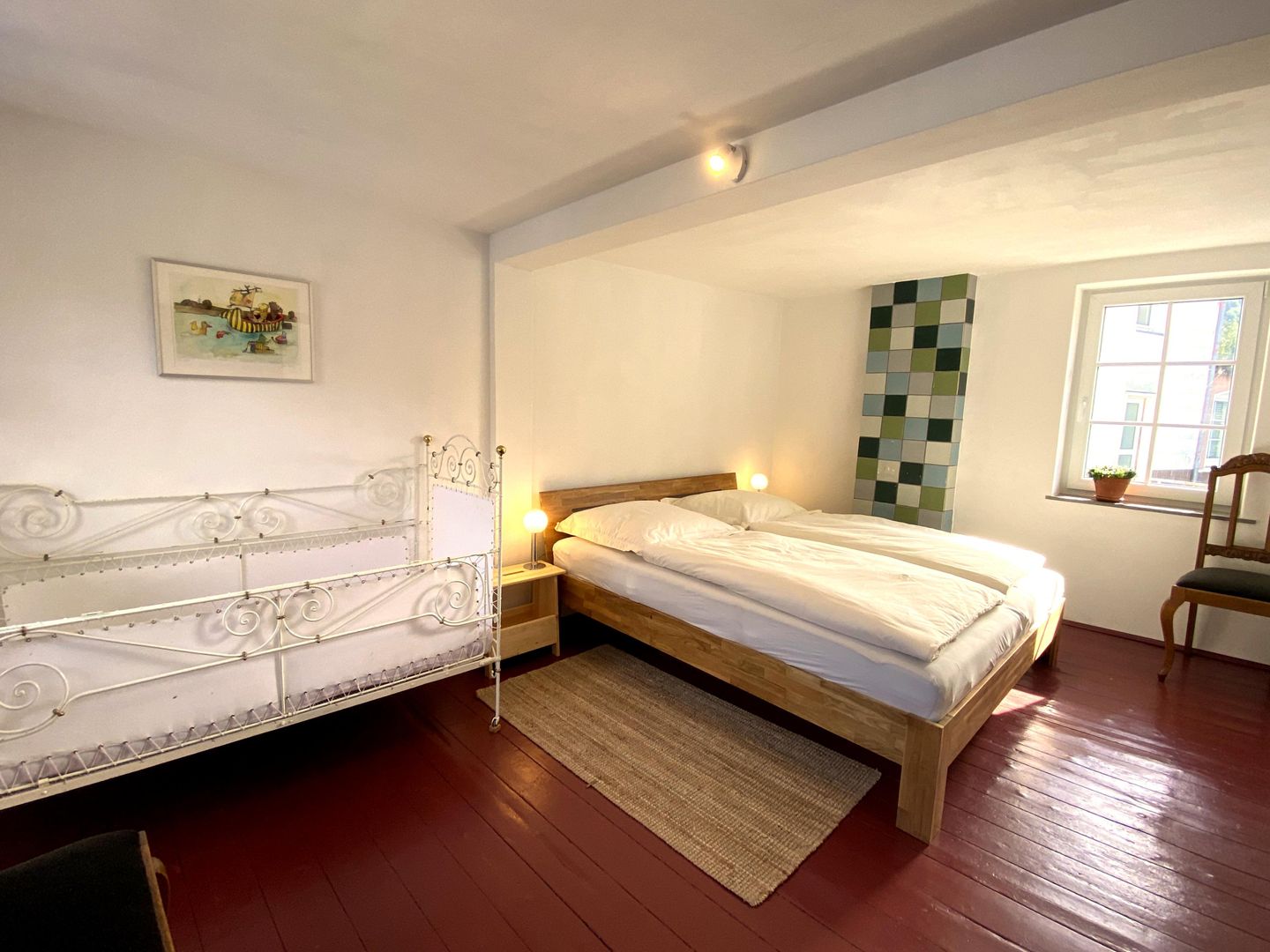 Het 100 vierkante meter grote huis heeft 6 kamers, waarvan 2 slaapkamers die geschikt zijn voor 4 personen (+ kind).