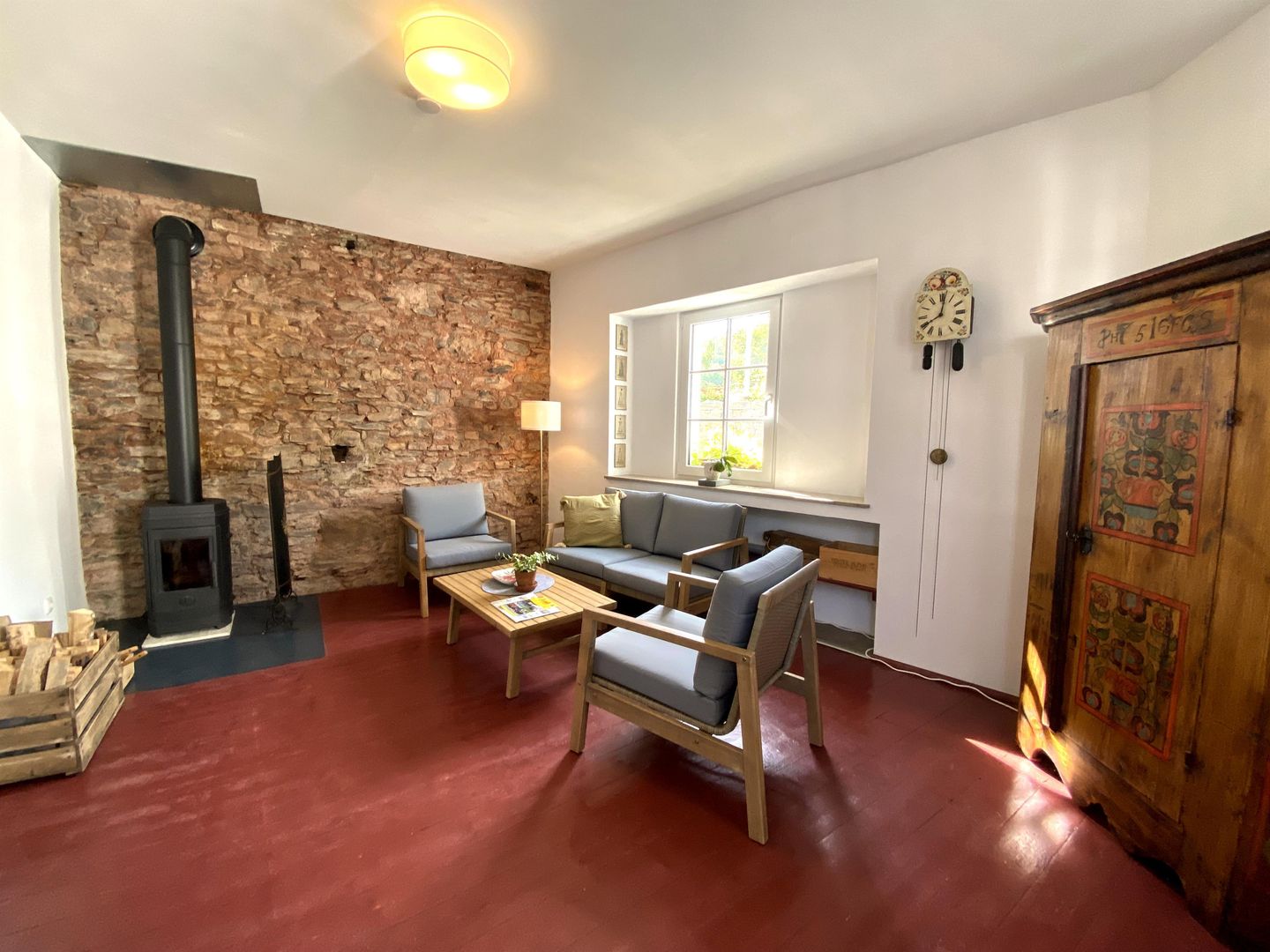 Op de begane grond nodigt een houtkachel uit tot gezellige uurtjes. Er is ook een garage met wallbox (laadstroom wordt apart in rekening gebracht).