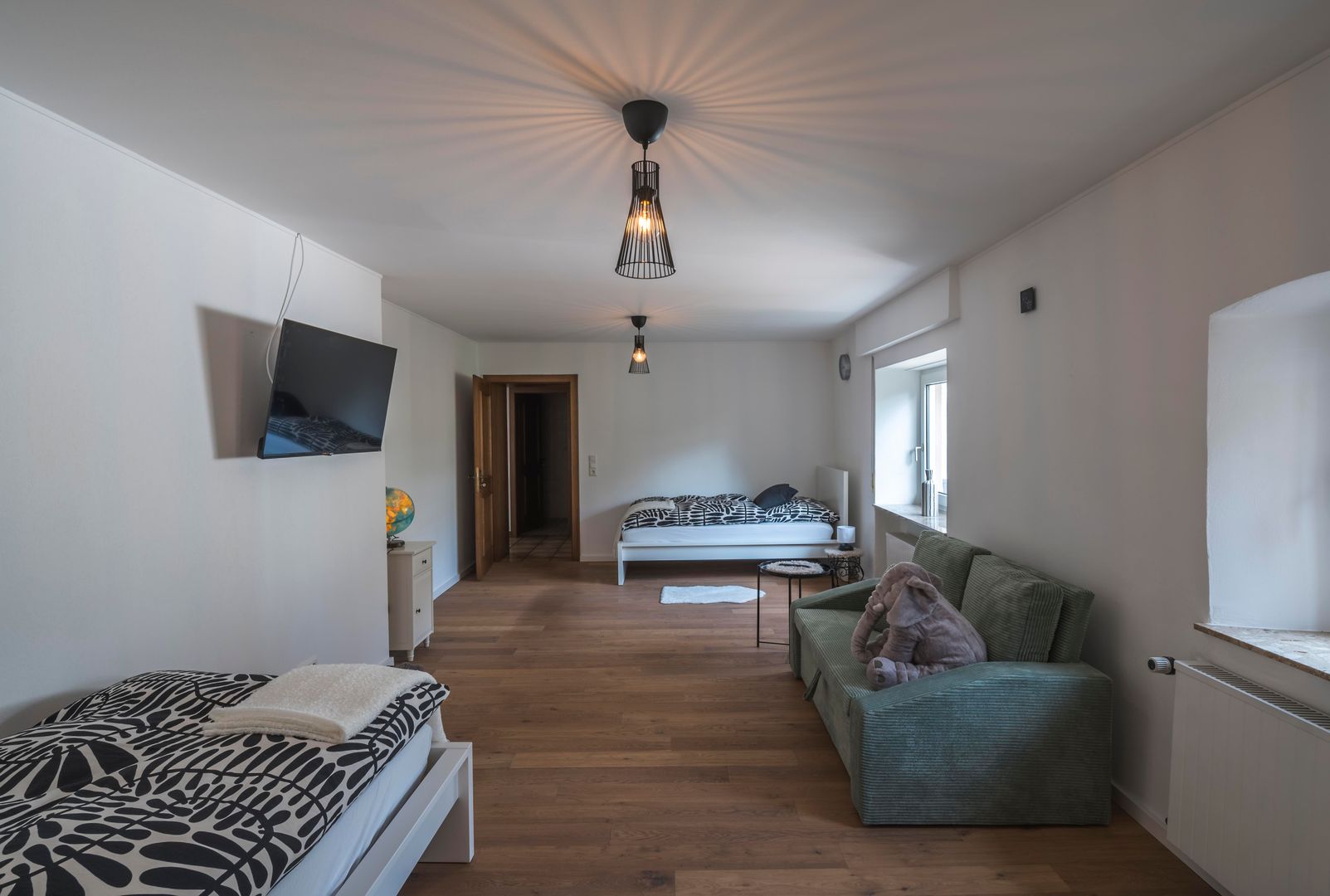 Ons vakantiehuis ligt in het hart van de Eifel en we hebben aan alles voor je gedacht, zodat je eindelijk weer echt kunt ontspannen: Gezellige zitjes binnen, een sauna met toegang tot het balkon, een tuin, gratis Wi-Fi, een eigen parkeerplaats, moderne slaapkamers en op verzoek elke ochtend verse eieren van onze boerderijkippen.