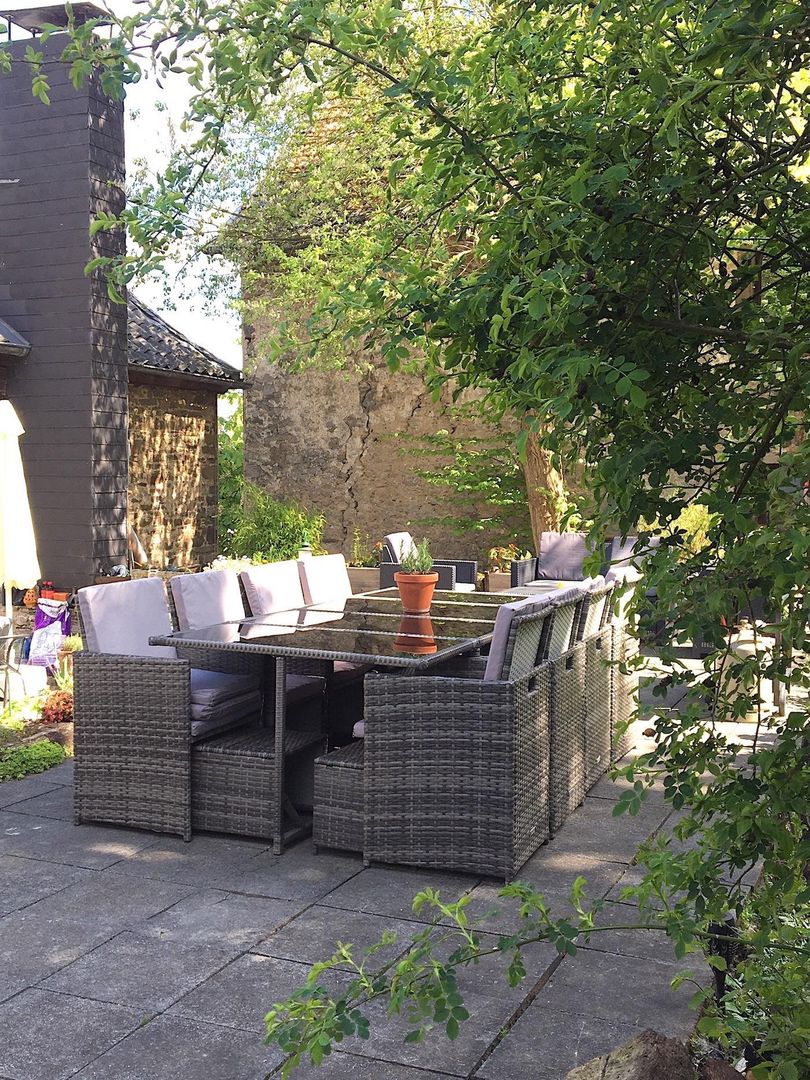Gasten op de begane grond hebben een eigen terras met een grote tafel en barbecue. Gasten op de bovenste verdieping hebben toegang tot de tuin op de eerste verdieping met een terras en een grote tafel en barbecue. Gasten die verblijven in de Ahrquelle of Georgstor appartementen kunnen ook gebruik maken van het terras in de tuin met eettafels en barbecue.