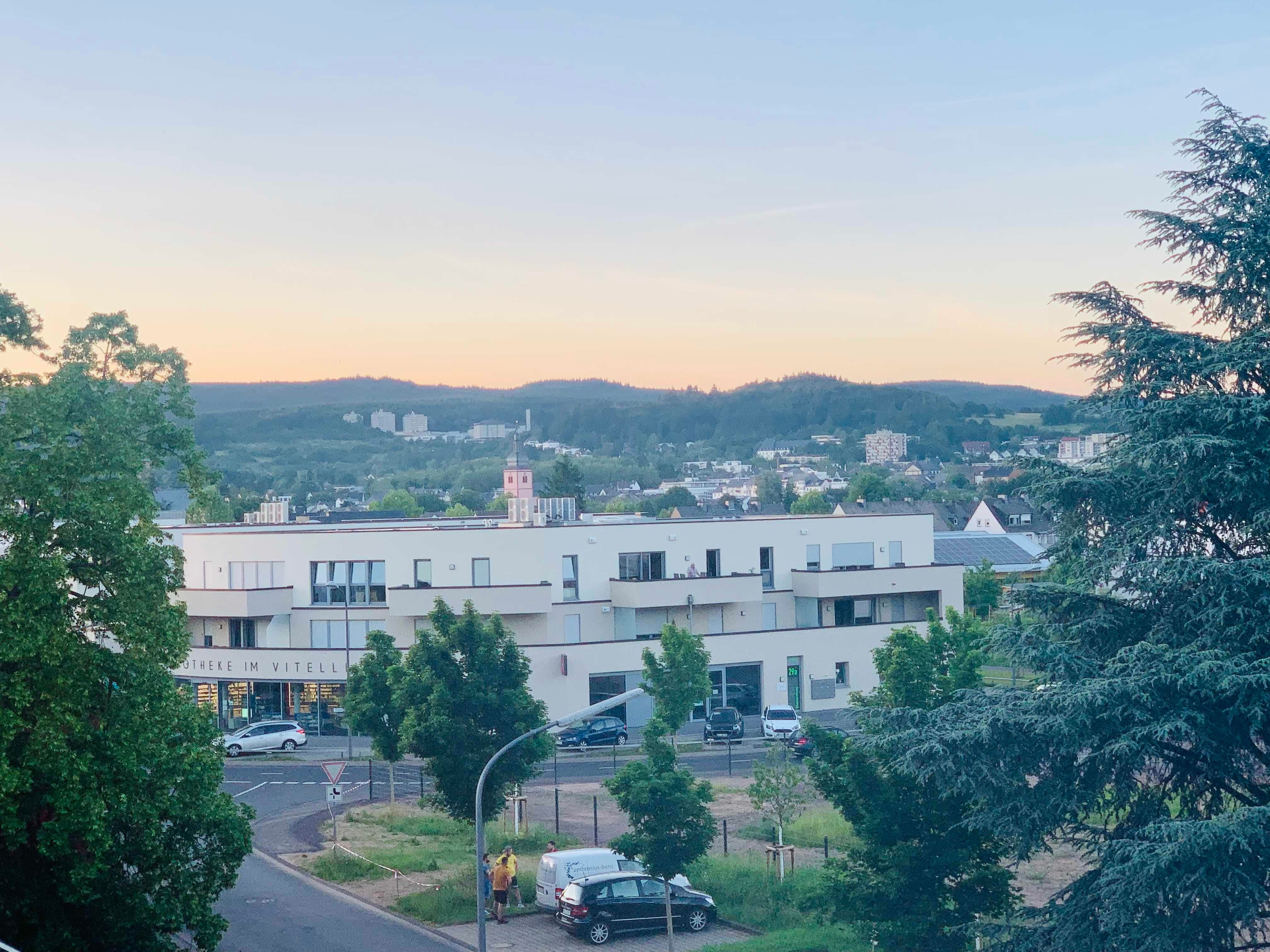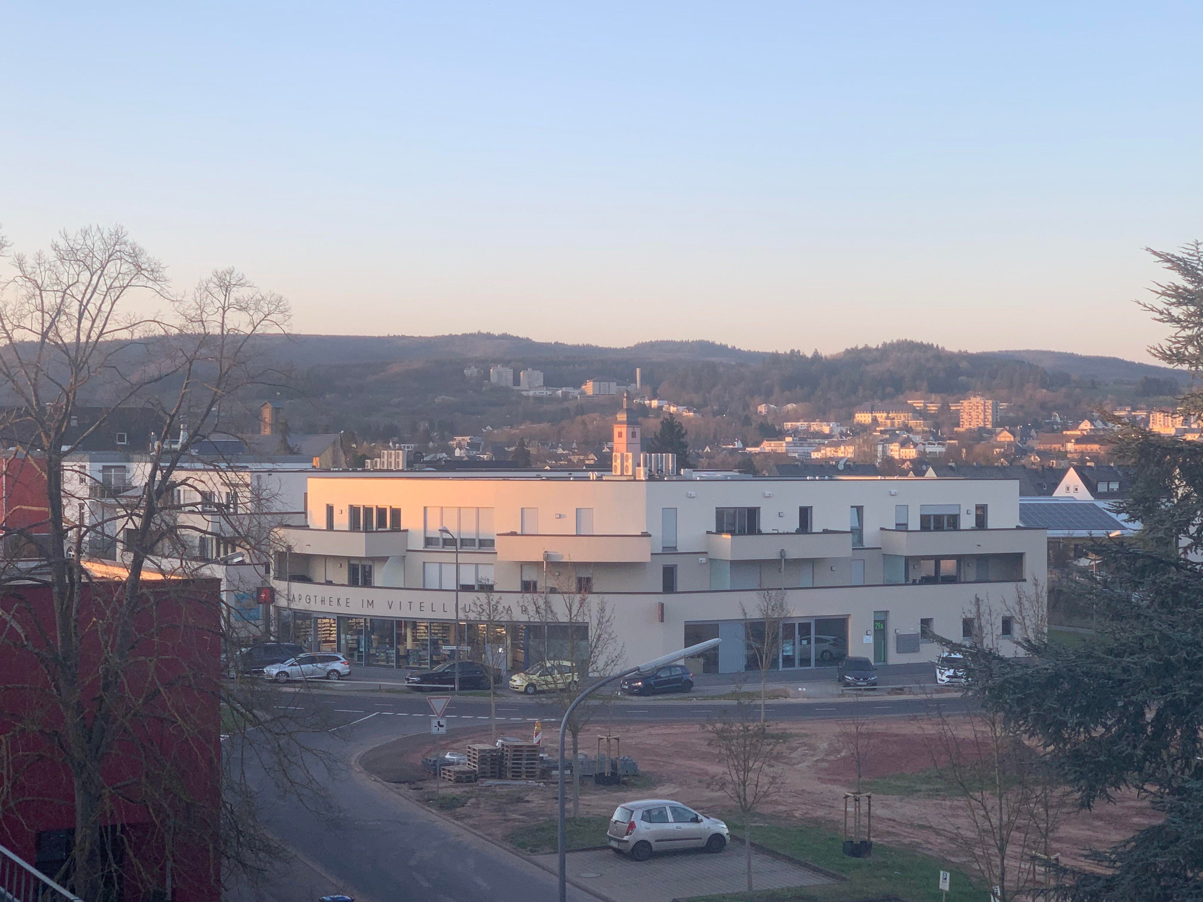 Ruim penthouse appartement in industriële stijl met uitzicht op het centrum van Wittlich in de directe nabijheid van winkels voor de dagelijkse behoeften. Door de ligging op de derde verdieping van een gebouw met meerdere verdiepingen zonder lift, biedt het appartement een prachtig uitzicht over de vallei van Wittlich in de richting van de Moezel en de Eifel.