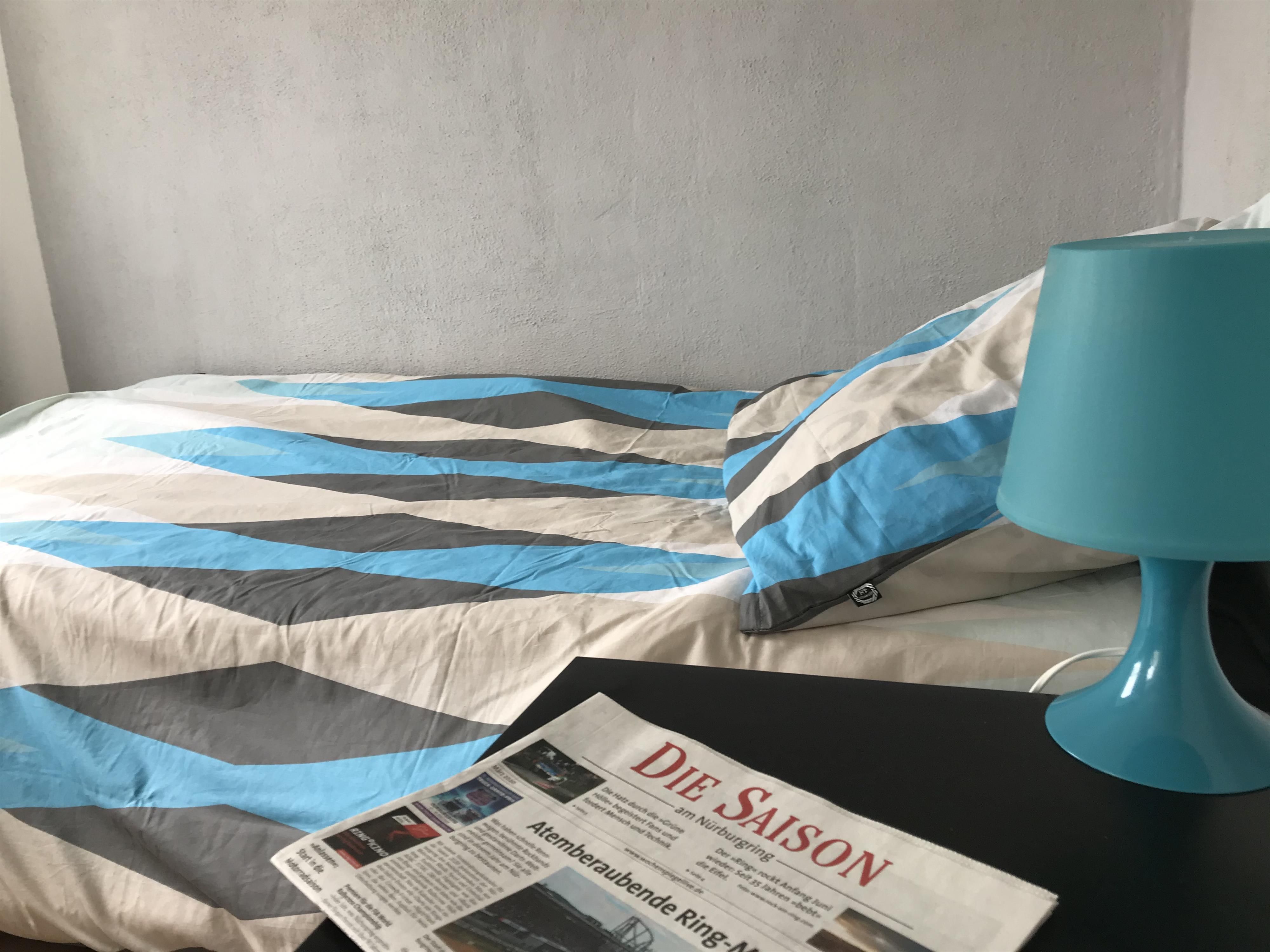 Eifelboerderij met charme Volledig gemoderniseerd en 4-sterren gecertificeerd vakantiehuis voor alleengebruik. Ons huis is volledig ingericht en voorzien van alle comfort voor een heerlijke en ontspannen vakantie. Bij ons kun je met maximaal 3 volwassenen of 2 volwassenen en 2 kinderen de Eifel en haar vele attracties ontdekken en je thuis voelen. Ons vakantiehuis ligt in het hart van het dorp Thür en heeft een woonoppervlakte van ongeveer 90 vierkante meter inclusief wasruimte en garage (ruimte voor een kleine of middelgrote auto). Er is nog een parkeerplaats op ongeveer 80 meter van het huis. Het biedt plaats aan 3 volwassenen of 2 volwassenen en 2 kinderen. Indien gewenst kun je een kinderbedje bijplaatsen. Het gebouw heeft een voor- en een achterplaats, die voor exclusief gebruik zijn en van elkaar gescheiden zijn door een hek. Er is een bankje om op te zitten in het voorste gedeelte en tuinmeubilair met een eettafel en 7 verstelbare tuinstoelen en een parasol voor je verblijf in het achterste gedeelte. De toegangsdeur op de begane grond leidt naar de hal met garderobe. Hier vind je ook het eetgedeelte met een royaal uitgeruste moderne keuken. Naast een keramische kookplaat, verhoogde oven en vaatwasser, vind je hier ook talloze kleine hulpjes zoals een koffiezetapparaat, broodrooster, waterkoker, theezetapparaat, magnetron, staafmixer, staafmixer en radio. De woonkamer met LCD TV 55" SONO Box en dressoir met kasten, salontafel, een relaxfauteuil en een slaapbank is aangrenzend. De moderne badkamer heeft een raam, een douche inclusief regendouche, toilet, haardroger en een kastje voor je keukengerei. Als service verstrekken we 2 kleine handdoeken en een douchehanddoek en kleine hotelcosmetica per geboekte persoon. Op de 1e verdieping vind je een gang met een raam en een passpiegel. De eerste kamer is geschikt voor één persoon en heeft een modern eenpersoonsbed van 0,90 meter bij 2,00 meter. Voor je comfort hebben we alle kamers uitgerust met speciale matrassen die aan twee kanten gebruikt kunnen worden. Bij het reserveren kun je aangeven of je een hard of zacht bed wilt, en de matras en het beddengoed zullen voor je klaarliggen bij aankomst. De kamer is ook uitgerust met een kleerkast en kapstok en een nachtkastje met wekker en bedlampje. De gang leidt naar een andere kamer, die een doorgang is en door ons is ingericht als tweede woonkamer. Het meubilair bestaat uit een tafel en een bank, een bureau met bureaustoel en leeslamp, een klein dressoir en een lcd-tv. Achter de kamer ligt de grote slaapkamer met een tweepersoonsbed. De twee matrassen van 1,00 bij 2,00 meter kunnen ook aan twee kanten gebruikt worden. Verder is er een 6-deurs kledingkast met een spiegel, twee nachtkastjes met bedlampjes, een wekker en een kleerhanger. Er is een kleine kluis voor het veilig opbergen van je waardevolle spullen. De wasmachine en wasdroger bevinden zich in de wasruimte, die twee ramen heeft en zich in een aparte ruimte naast het gebouw bevindt. Hier vind je ook droogrekken. Schoonmaakspullen, stofzuiger, strijkplank en strijkijzer. Voor je comfort zijn de ramen in het hele huis voorzien van elektrische rolluiken en de radiatoren hebben digitale thermostaten.