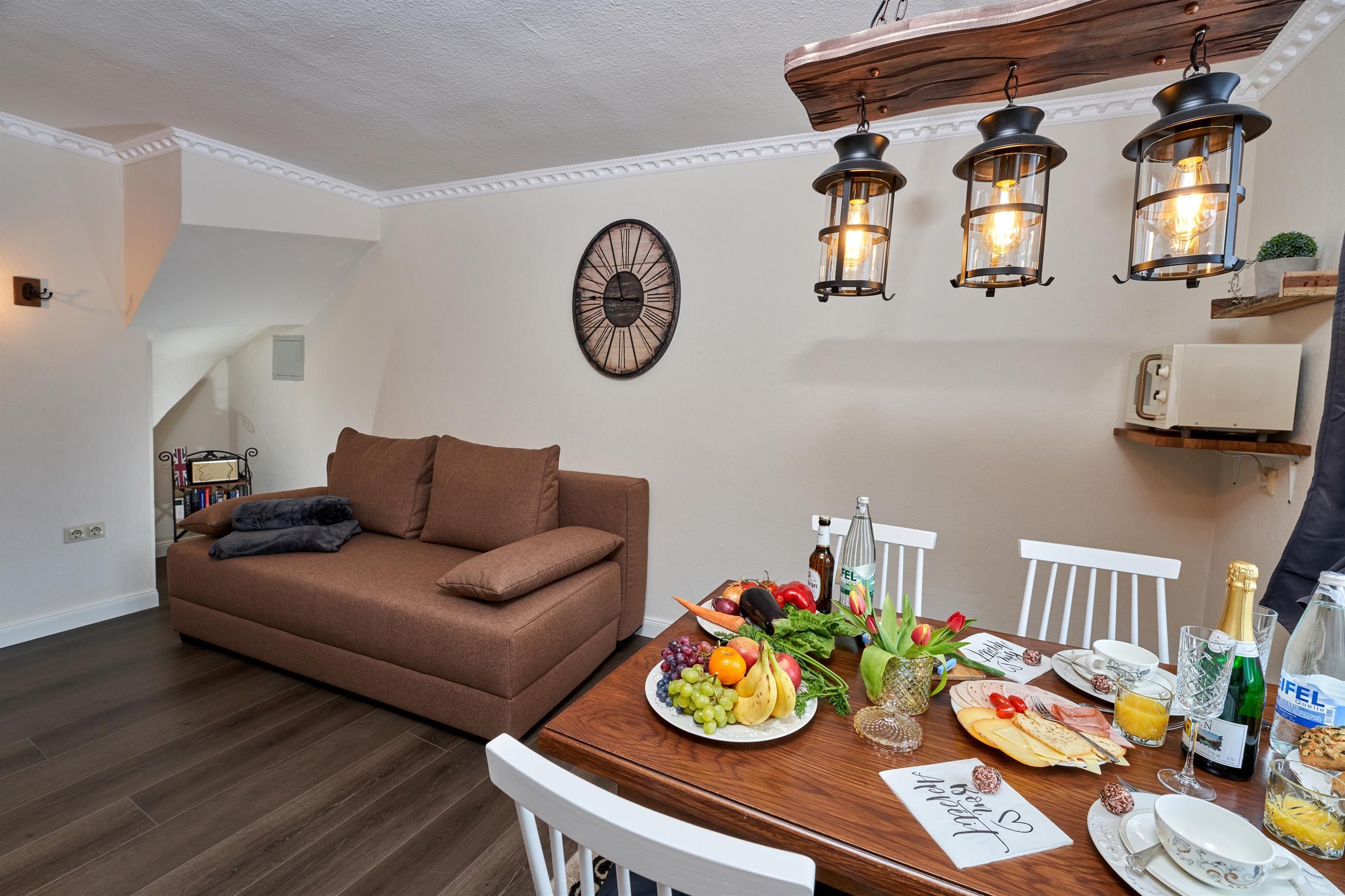 Het vakantiehuis Burg, de zogenaamde Ritterstube, biedt u een enkel appartement voor 2-6 personen of u heeft het huis voor uzelf en een heel bijzondere setting. De eerbiedwaardige muren onder de ruïnes van Ulmen Castle, volledig gerenoveerd in 2021, bieden het best mogelijke comfort gecombineerd met prinselijke elegantie. Ze slapen in hemelbedden en wonen boven de daken van iepen. Perfect voor de huwelijksreis! Je hebt het huis voor jezelf en kunt elkaar nog beter leren kennen.
