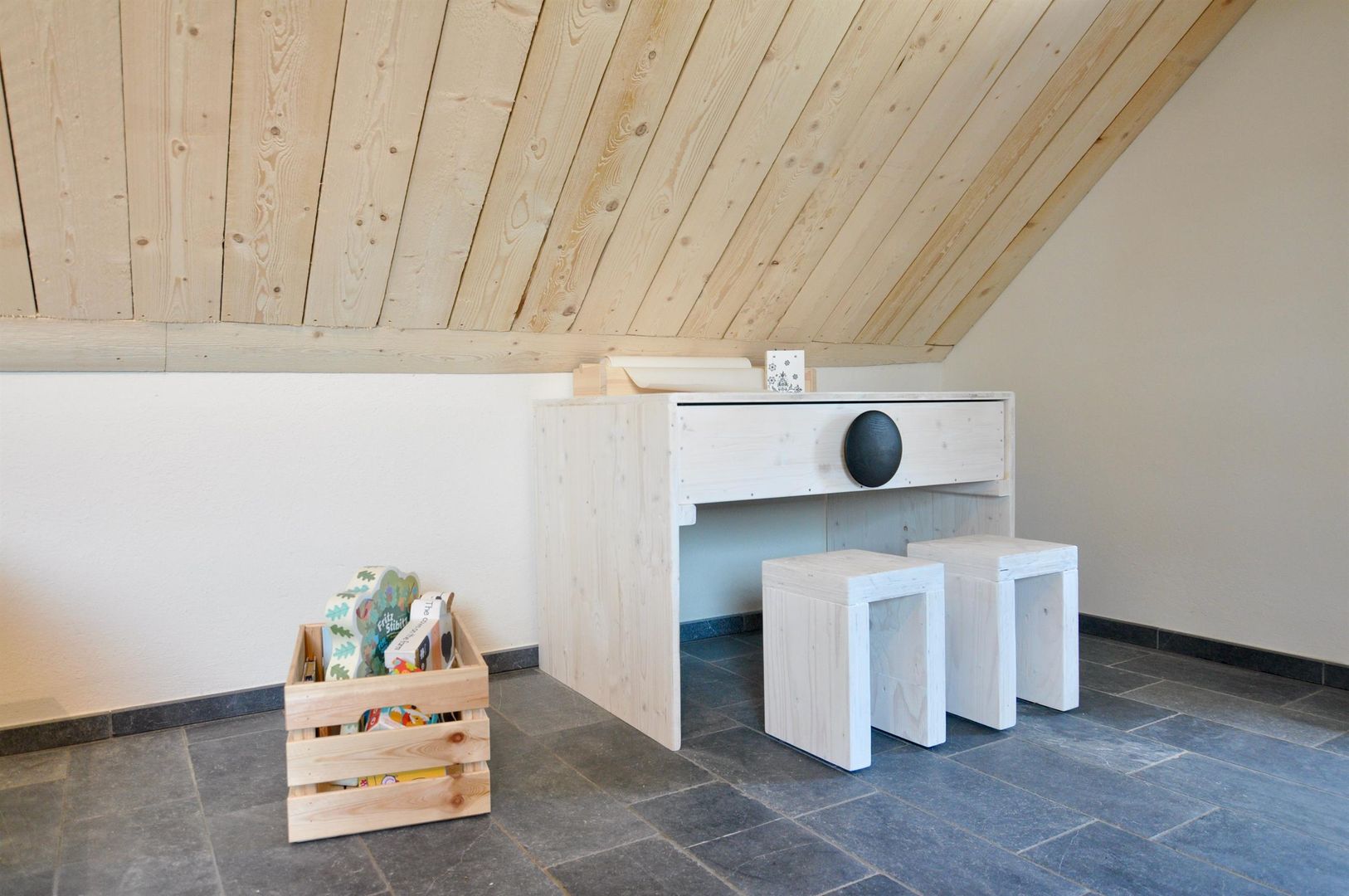 De binnenkant van het huis is goed doordacht en met oog voor detail ingericht. De woonkamer in de aanbouw is ruim en geeft direct toegang tot het houten terras, welke o.a. is uitgerust met een verhoogd bed bloembakken, een gasbarbecue en twee comfortabele ligstoelen en een parasol. De keuken is modern en voorzien van alles wat je nodig hebt; Ook de badkamer en toilet zijn splinternieuw. Er is een douche van vloer tot plafond op de 1e verdieping! De slaapkamer op de 1e verdieping heeft een kleine zijkamer die gebruikt kan worden als garderobe of als babykamer - in het algemeen is het huis ook ontworpen om kinderen te huisvesten, van de hoge stoel en de toiletbrilverkleiner tot kinderspelletjes en boeken. Ook de kinderkamer op de 1e verdieping is dienovereenkomstig ingericht. De kamer op de grote open zolder (niet afsluitbaar) - met een super vrijstaand bad in het midden van de kamer, nog een tv, gymnastiektoestellen etc. en een zeer groot tweepersoonsbed kan gebruikt worden als extra slaapkamer of als familiekamer om te relaxen of spelen.
