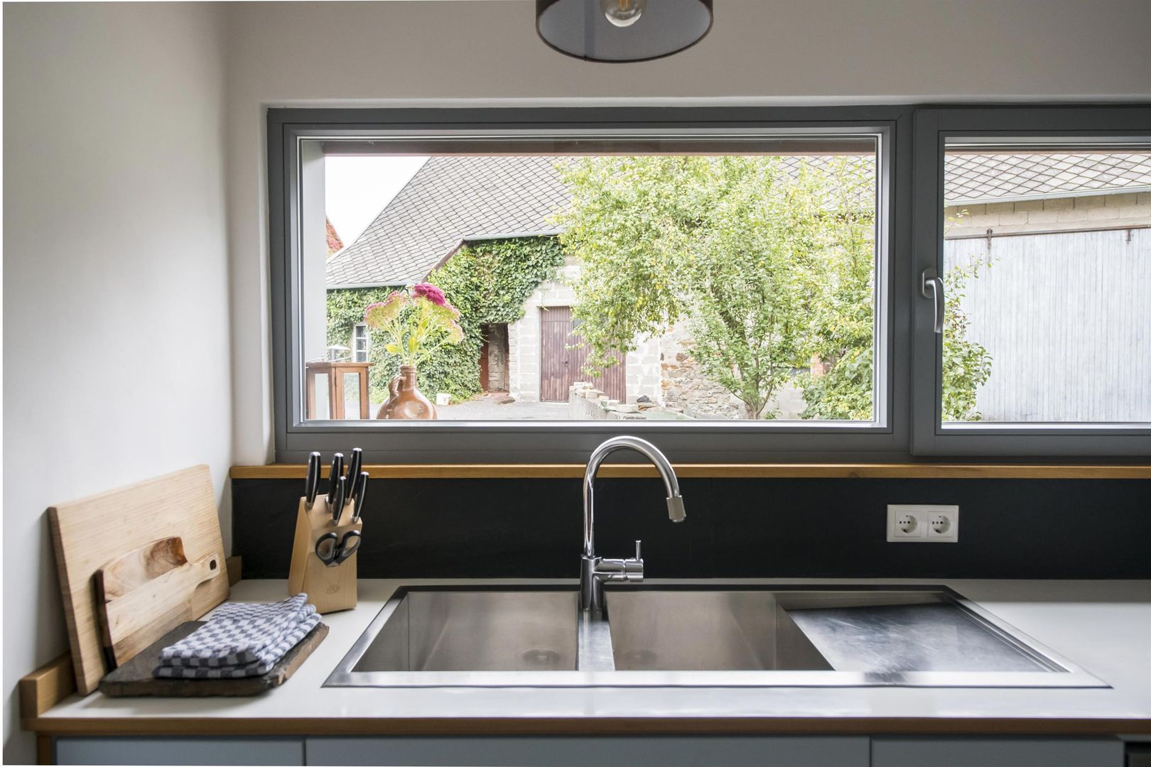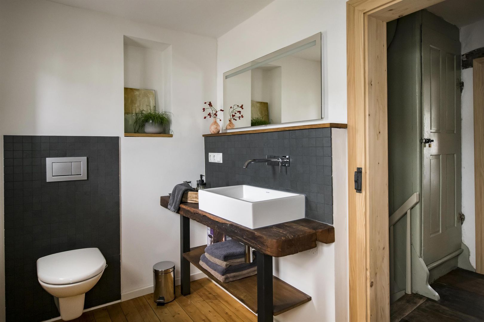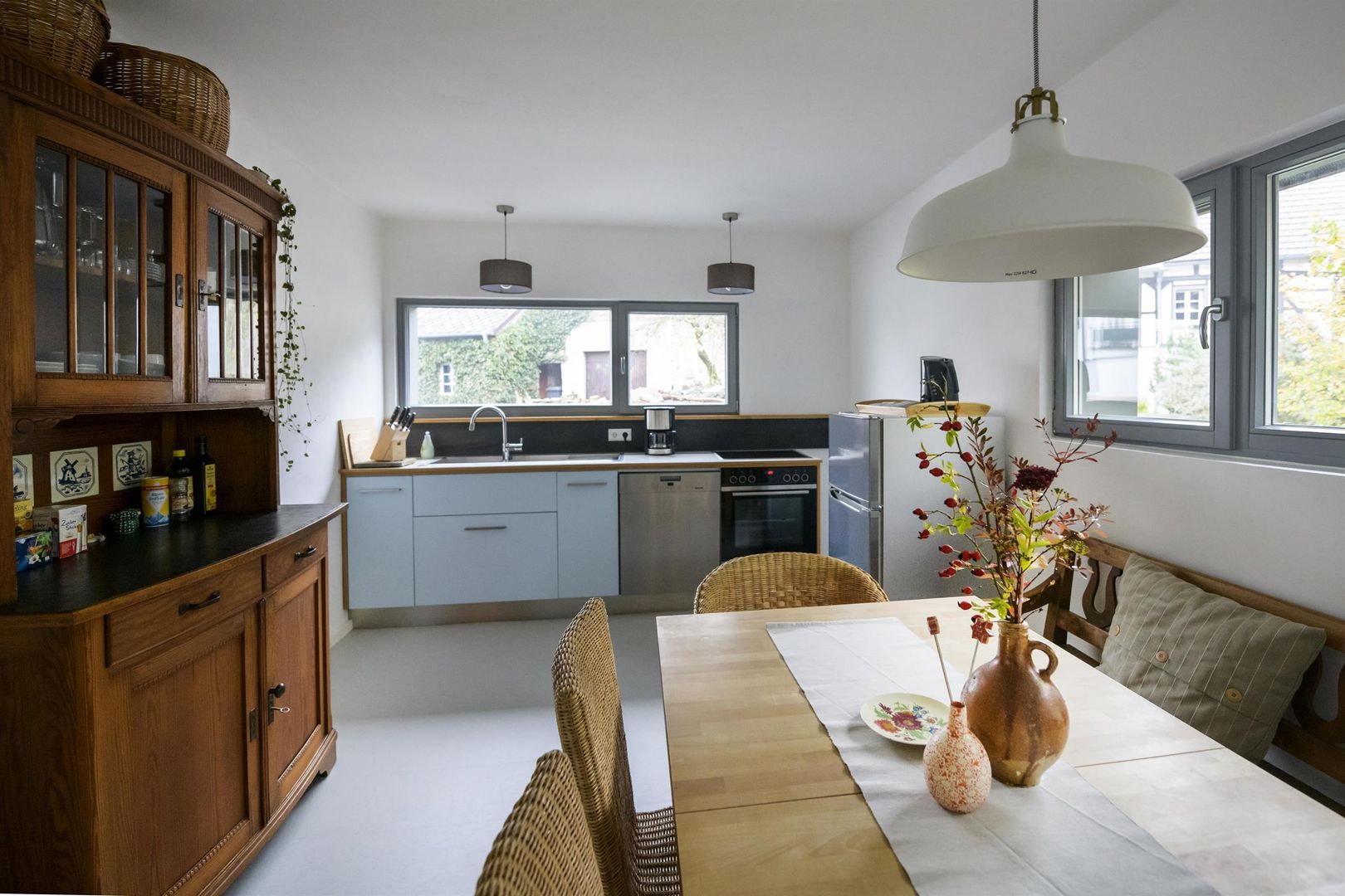 Een ecologisch gerenoveerde boerderij uit de 18e eeuw met een gemoderniseerde aanbouw biedt ruimte en sfeer voor een ontspannen en tegelijkertijd comfortabele vakantie. Een eigentijdse moderne keuken met zithoek en wandverwarming vormt een mooi contrast met het gerestaureerde trappenhuis, de oude deuren met kistsloten en de oude houten vloeren.