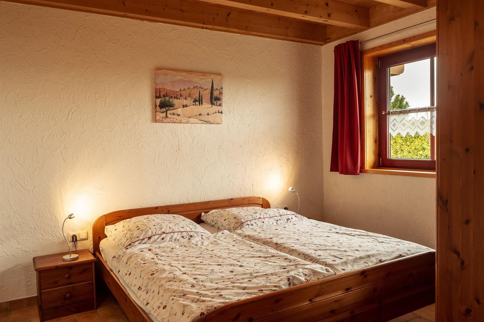 - een slaapkamer met tweepersoonsbed en een eenpersoonsbed