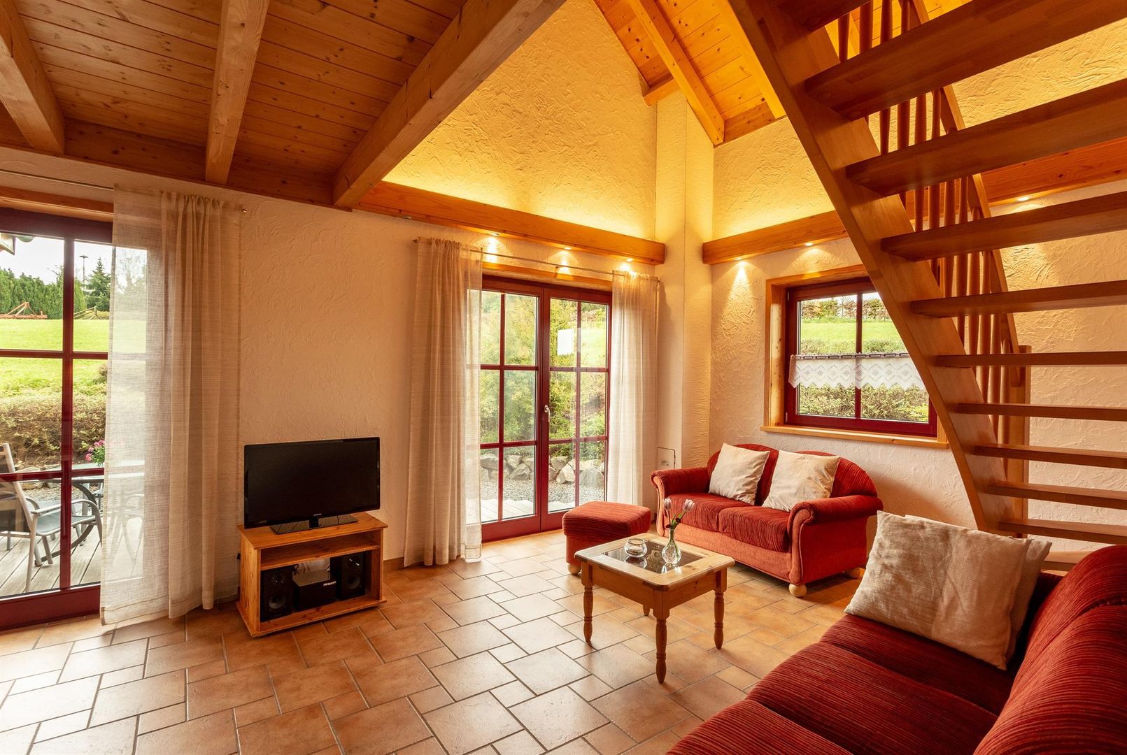 - een grote woon- en eetkamer met satelliet-tv