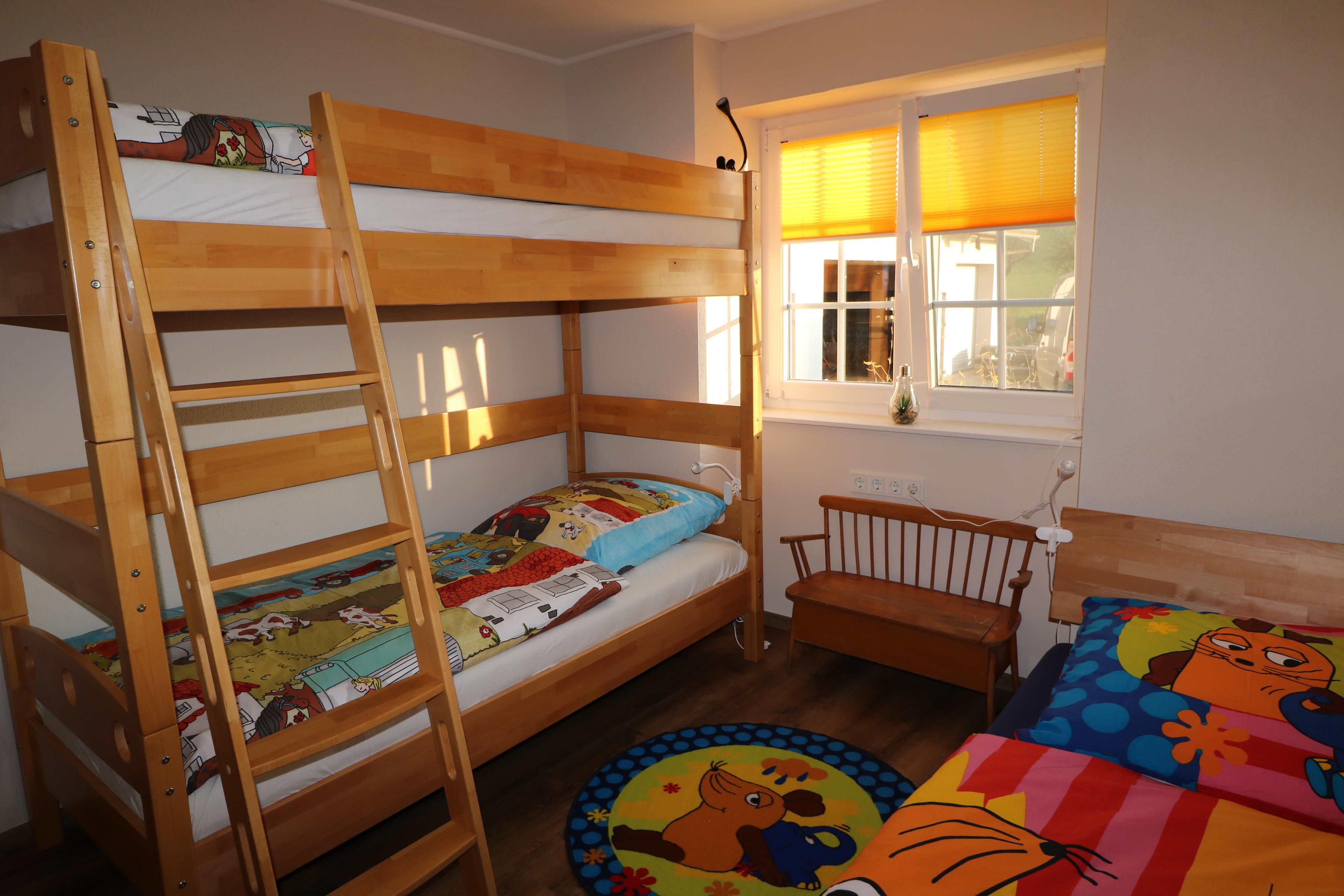 - 2 slaapkamers (een tweepersoonsbed, een eenpersoonsbed en een tweepersoons hoogslaper)