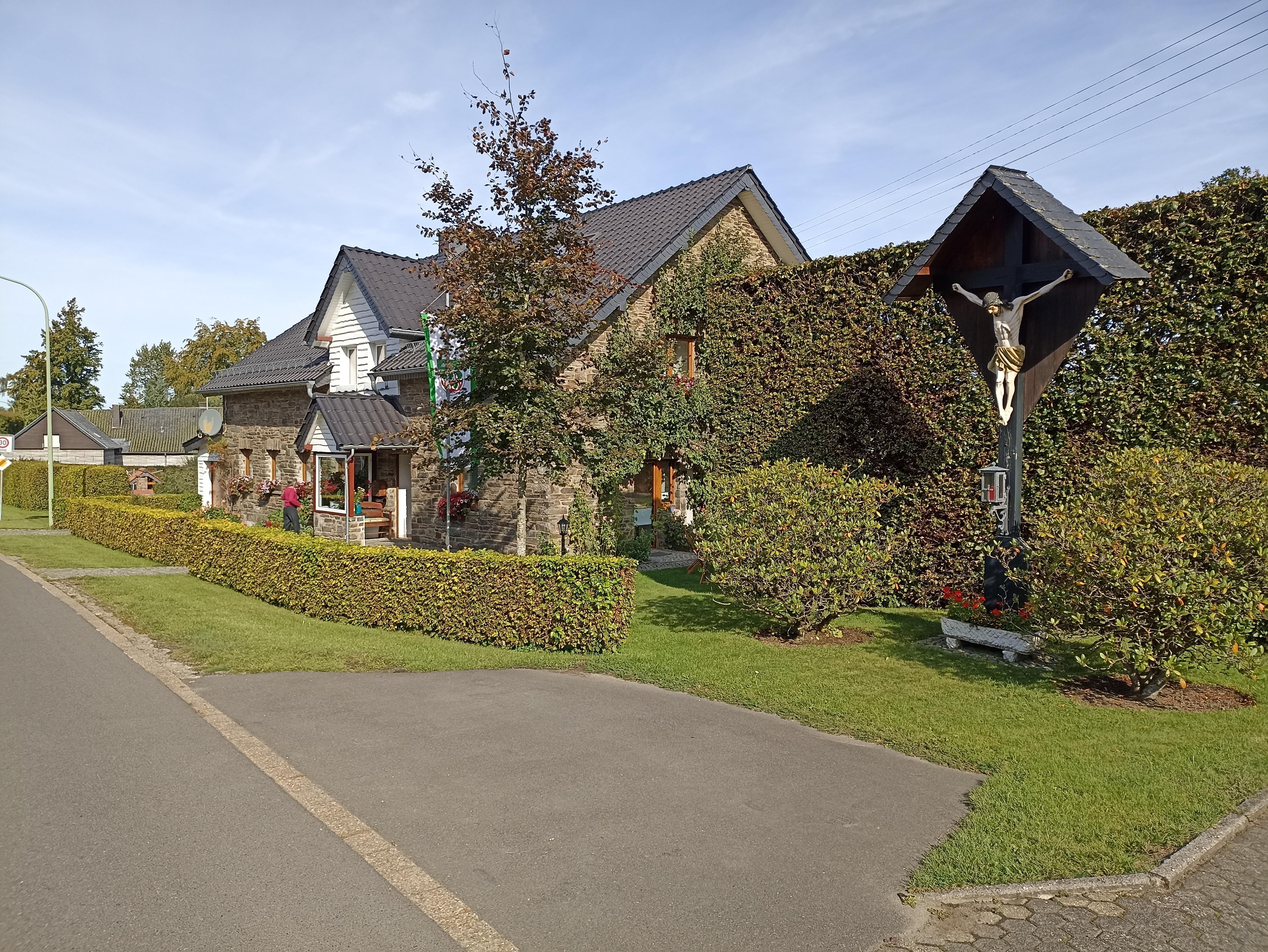 Bij het huis hoort een grote tuin, die gebruikt kan worden door onze gasten. We zorgen goed voor ons eigendom, maar laten ook de natuur haar ruimte op sommige plekken, zodat we in de zomer een veelheid aan vlinders tegenkomen, het embleem van ons dorp. In de herfst verzamelt een paartje eekhoorns de noten. Er zijn ook roofdieren bij ons thuis, want in de grote beukenbomen in de tuin nestelen altijd een of twee eksterparen.