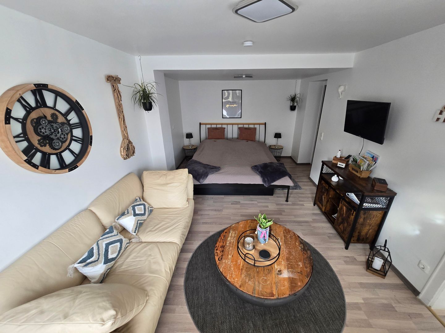 De flat heeft een volledig uitgeruste keuken, een ruime badkamer met douche en een comfortabele slaapkamer met een waterbed. WLAN is natuurlijk gratis beschikbaar.