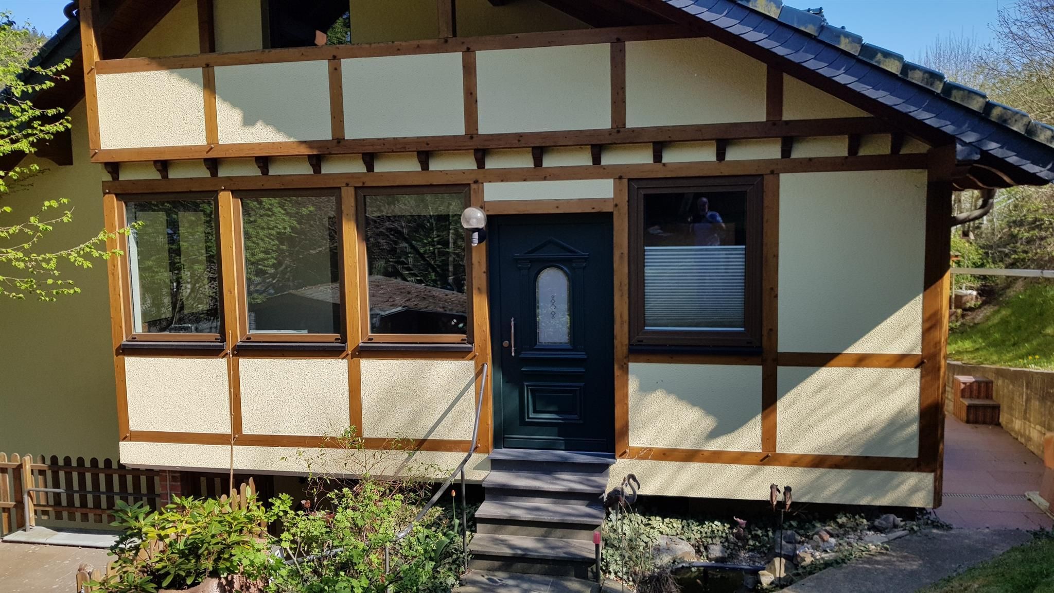 Liefdevol ingerichte, rookvrije vakantiewoning in het centrum van Daun - Steinborn. De vakantiewoning ligt direct aan wandelpaden / "Eifelsteig" in de directe omgeving van het kuuroord Daun en de Eifelmaaren. Het Maare-Mosel fietspad is via zijwegen in 7 km te bereiken. Het appartement heeft een mooie woonkamer met flatscreen-tv, een gezellige zithoek/slaapbank. De slaapkamer heeft een boxspring tweepersoonsbed en een kledingkast / dressoir met veel bergruimte. De nieuwe inbouwkeuken heeft een keramische kookplaat, hoge oven, vaatwasser, koelkast met vriesvak, een eettafel met vier stoelen. Vanuit de keuken heb je toegang tot de gezellige serre, evenals het terras, de ligweide en de barbecuefaciliteiten. De gehandicaptenbadkamer heeft een inloopdouche, WC en 2 wastafels. Het hele appartement heeft gratis W-LAN. Er is een stalling voor fietsen / motoren in de garage. Als onze gasten kun je ook een e-bike voor mannen en/of vrouwen bij ons huren (vraag het ons bij aankomst). De huurprijs voor de fietsen is €15 per fiets per dag. Je vindt foto's van de fietsen in de galerij. Er is een grote Rewe supermarkt met een bakker en vers vlees toonbank op 3 kilometer afstand. Op 200 meter van de vakantiewoning kun je genieten van de Eifelkeuken in het restaurant Landgasthaus Beim Brauer. Er is hier ook een heel mooi wellnessgedeelte. Je kunt ons ook vinden op onze website WWW.FEWO-ZUR-SCHMIEDE.COM, waar je ook kunt reserveren.