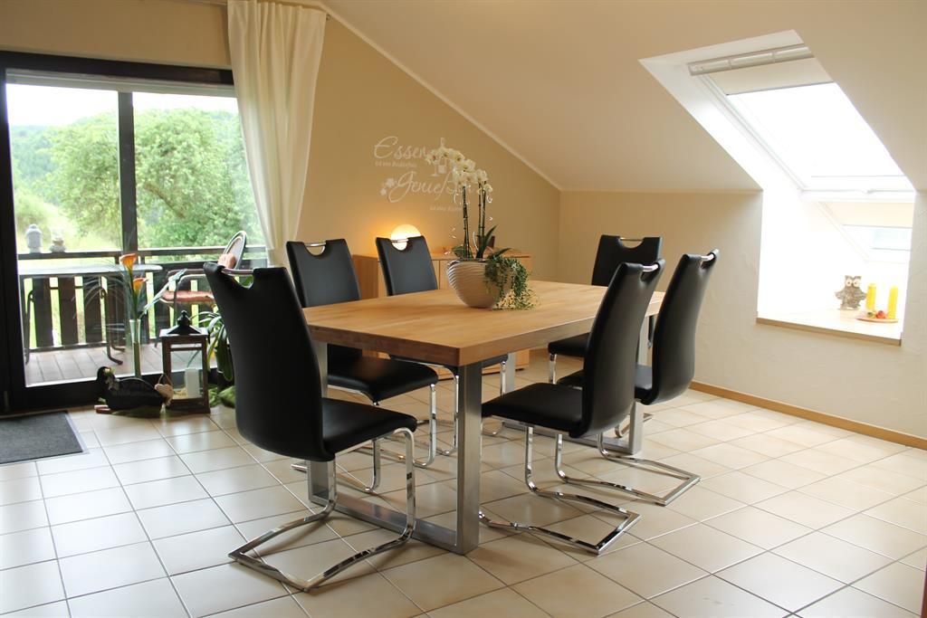 Aantrekkelijk 4-sterren-appartement voor 2 tot 6 personen (120 m²), eigen ingang, prachtige uitzicht over de vallei, weilanden en bossen. Hier vindt u rust en ontspanning en uw kinderen veel ruimte voor plezier en spelletjes.