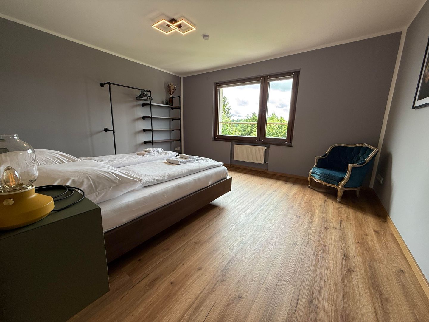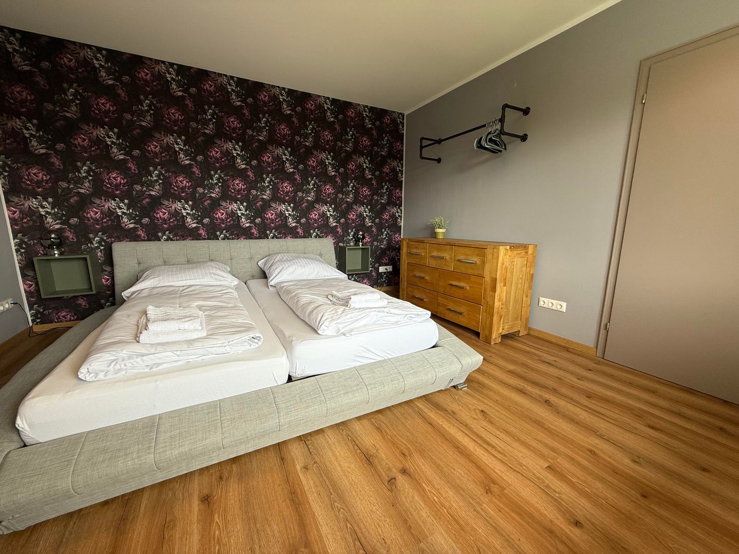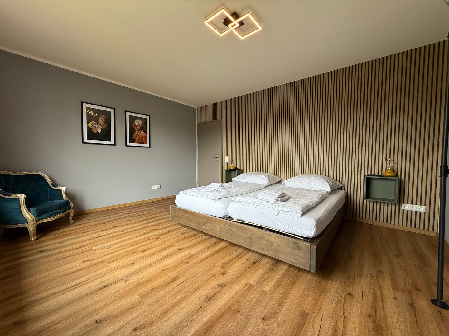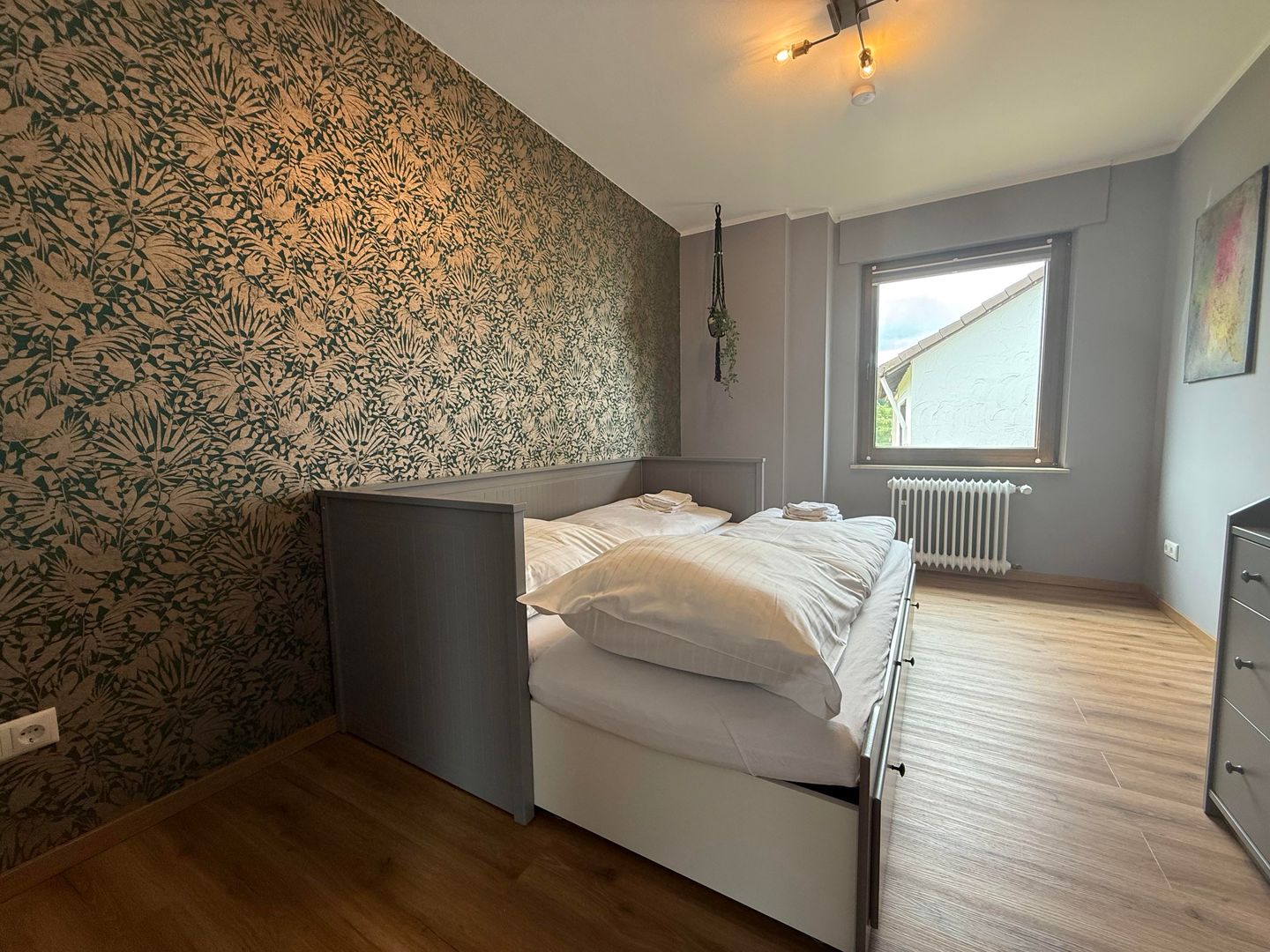 Er zijn drie comfortabele slaapkamers op de bovenverdieping. Twee kamers zijn ingericht met tweepersoonsbedden en bieden een prachtig uitzicht op het groen. De derde slaapkamer heeft een uitschuifbaar bed. Alle slaapkamers zijn voorzien van verduisteringsgordijnen.