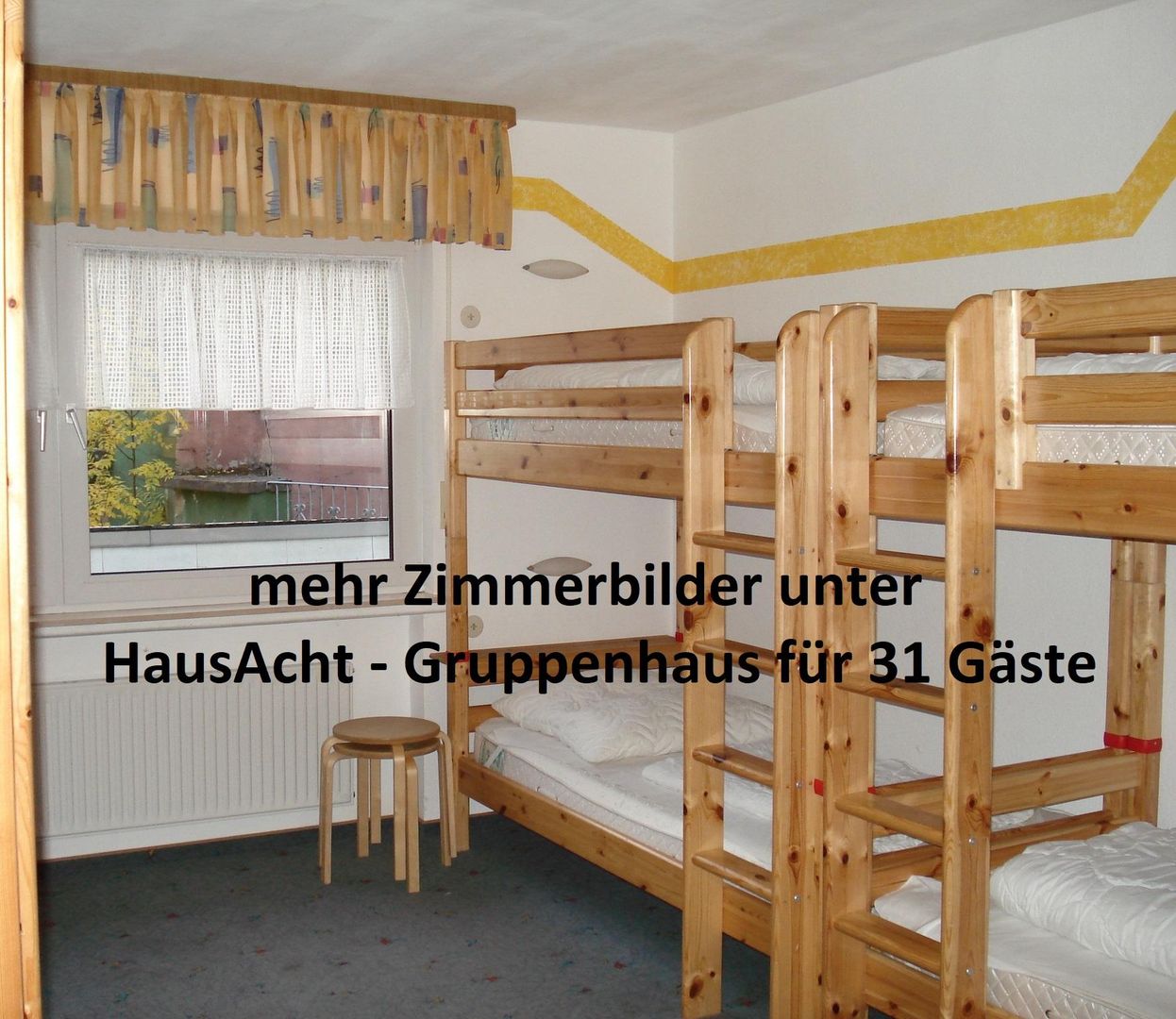 Het groepshuis is geschikt voor maximaal 31 personen. Het KleinHausAcht (bijgebouw) wordt automatisch verhuurd voor groepen vanaf 32 personen. Op verzoek kan een kleinere groep ook verdeeld worden over het groepshuis en het KleinHausAcht (bijgebouw). Je kunt dit bespreken met je gastheer.