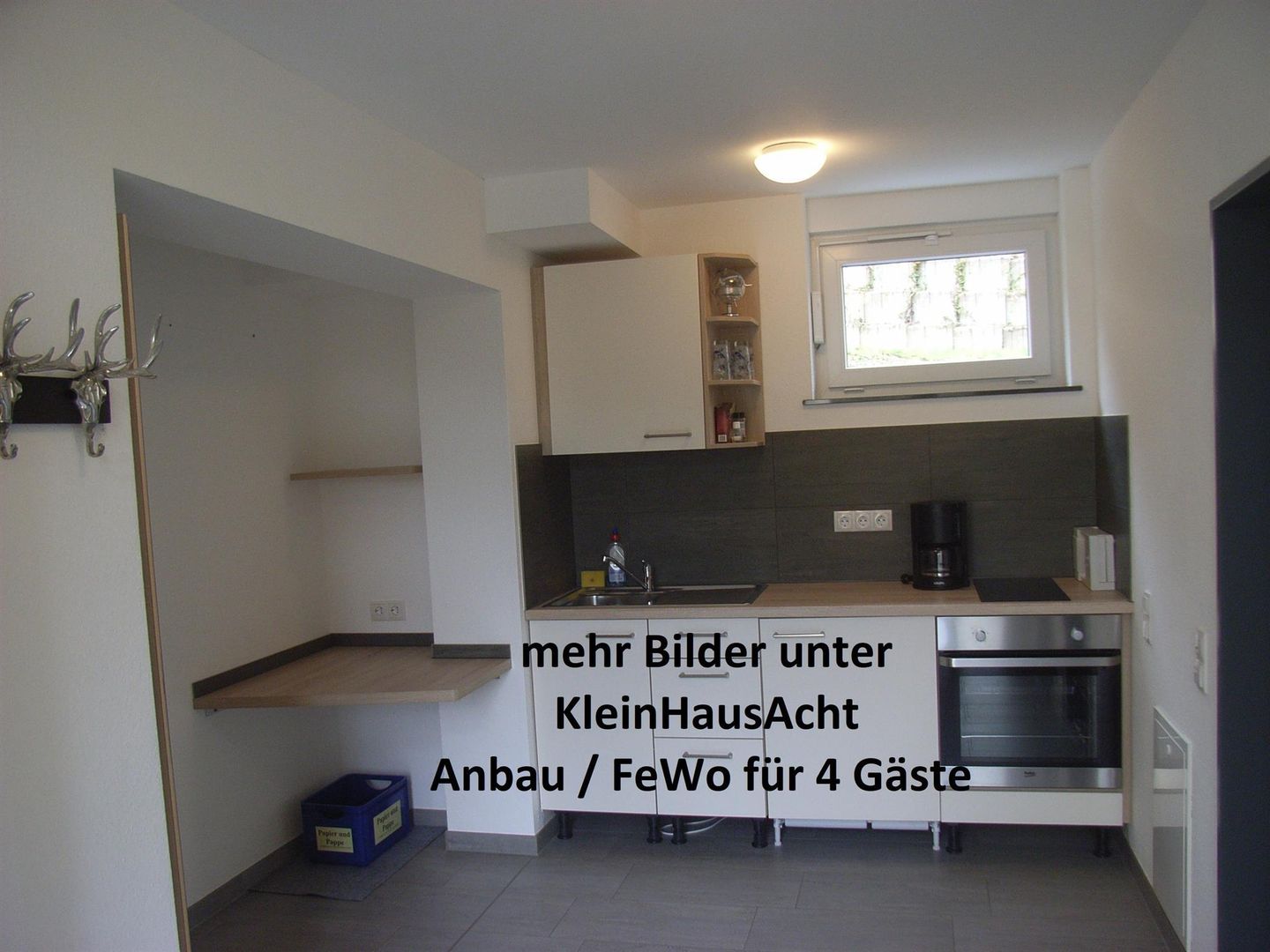 Het drempelvrije KleinHausAcht kan op integratieve basis gehuurd worden. Deze aanbouw op hetzelfde niveau als de gemeenschappelijke ruimtes van HausAcht biedt 2 extra slaapkamers voor 4 gasten, een hal met kitchenette en een grote badkamer met barrièrevrije faciliteiten. Tot 3 rolstoelgebruikers kunnen hier worden ondergebracht.