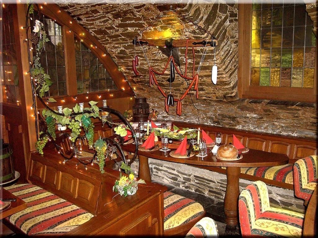 Wij zijn een hotel met 15 tweepersoonskamers, direkt aan het hartje van Monschau en toch zeer rustig gelegen. Het huis is 400 jaar oud en bezit nog een orgineel gewelf c.q. wijnkelder. Hierin bevindt zich nu een restaurant, bier en wijnkelder voor ca. 60 personen. Wij werken samen met andere hotels in Monschau zodat wij meer dan 60 Personen kunnen herbergen. Vanzelfspreken d zijn alle kamers voorzien van douche, wc, telefoon en tv. Alle maaltijden kunnen in ons restaurant gebruikt worden. In de oude gewlven en wijnkelder, worden de honderden jaren van weleer weer levend en wordt u meegenomen op een reis door het verleden.